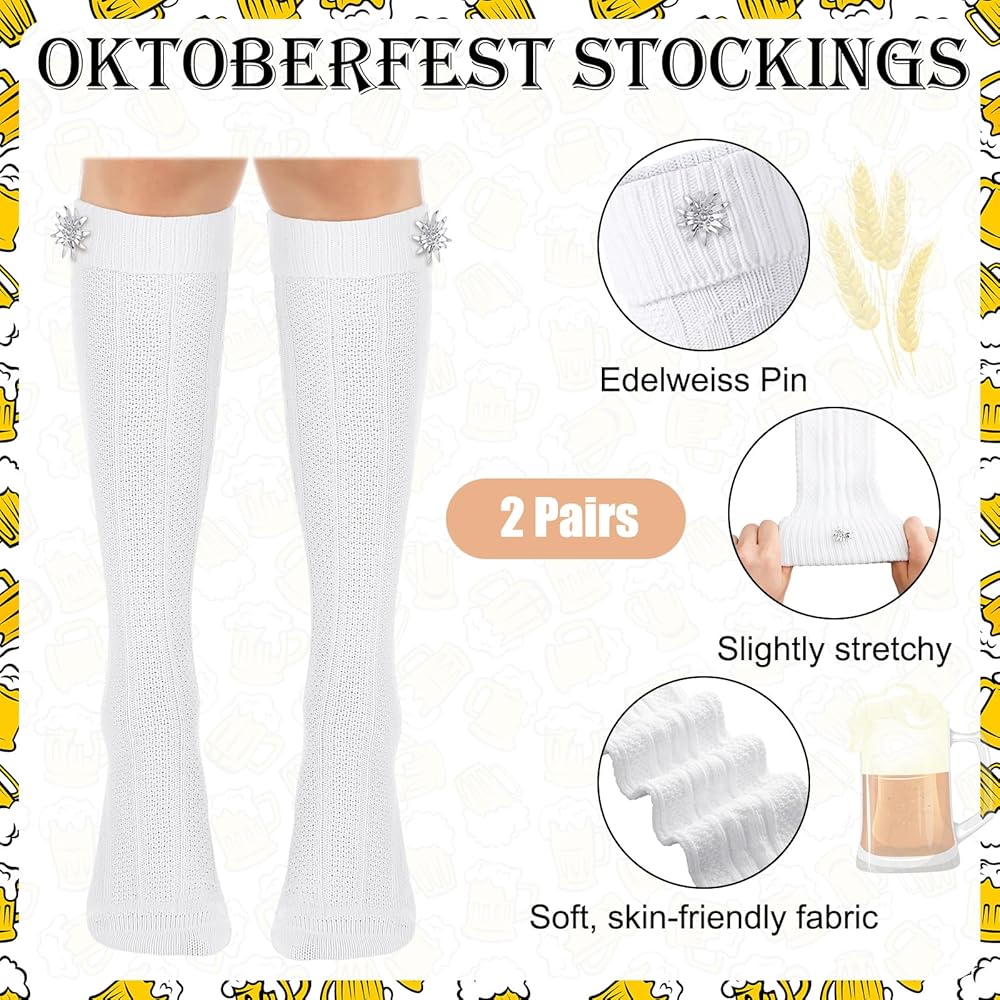 تشمل الحزمة: ستتلقى أزواجين أبيض جوارب عجل Bavarian Bavarian مع 4 أجزاء من دبوس Edelweiss ، ملحق مثالي ويجب أن يكون لديك الأزياء البافارية التقليدية