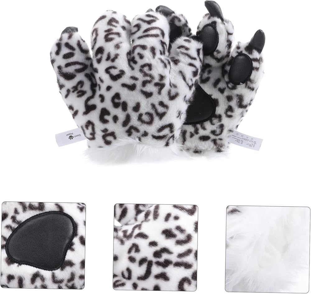 snow leopard glove It can cover hands completely and is very suitable for wearing any style of clothing.plush glove Perfect for stage performances and cosplay parties.animal gloves The snow leopards claw gloves are specially designed to give you a fashion style and meanwhile keep your hands warm.leopard gloves costume paw You'll love this gloves with its premium texture