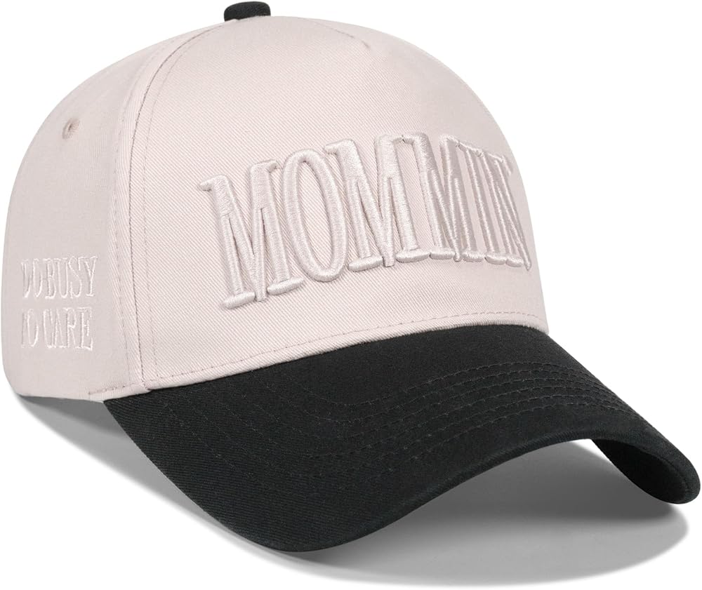 Materials and Design:This durable Two-Tone Mommin hats is made with a high-quality cotton construction, skin friendly and breathable.And front 3D embroidery with the letters "MOMMIN" ,proud mom designed specifically for busy.The personalized slogan on the right is "TOO BUSY TO CARE" ,lazy and cool declaration.This hat essential accessories for a mom
