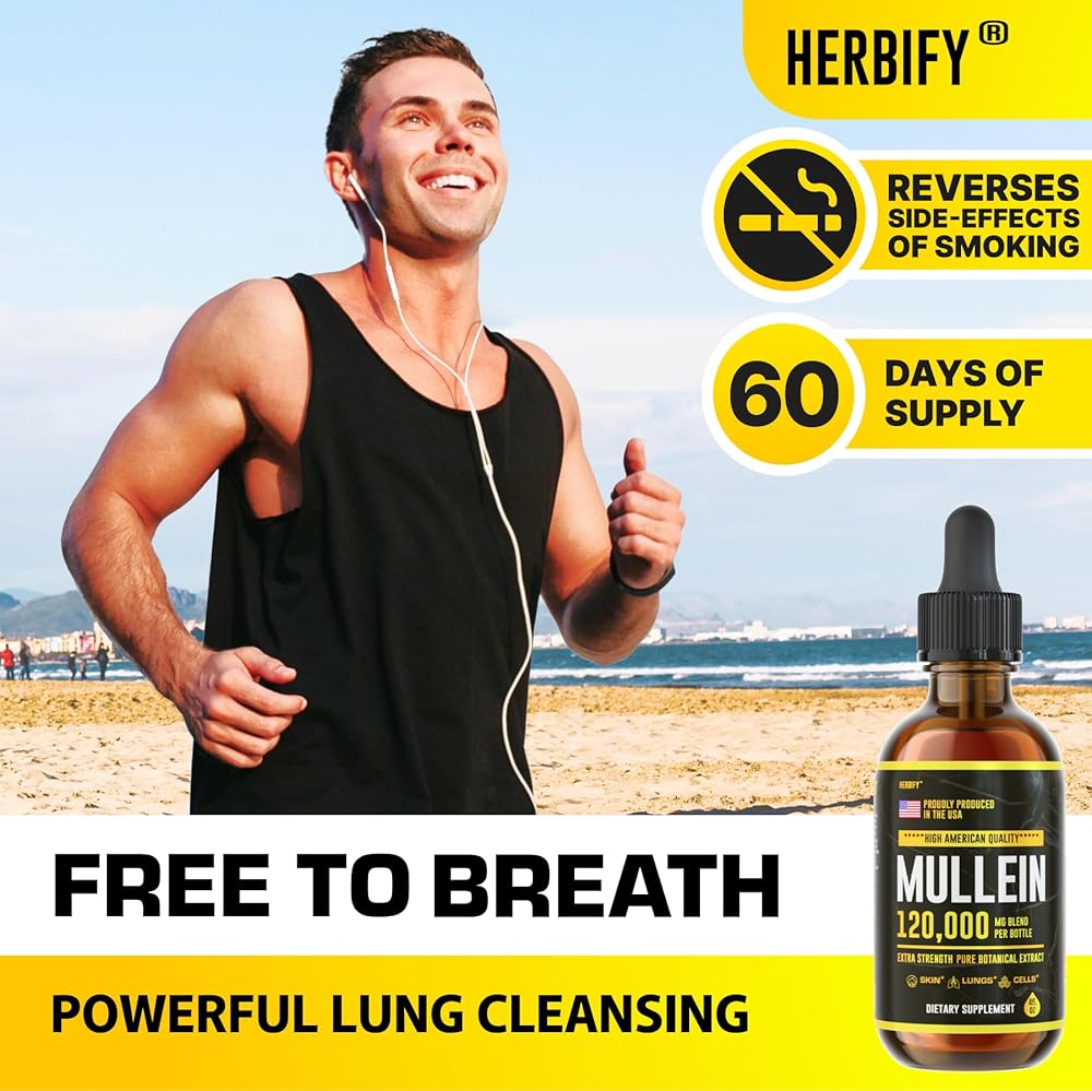 HERBIFY Mullein Drops - Lung Cleanse - Leaf Extract - Powerful Mullein for Immune Support,Detox & Respiratory Support - Made in USA - Lung Cleanse for Smokers - 4 Oz