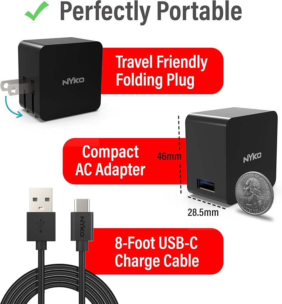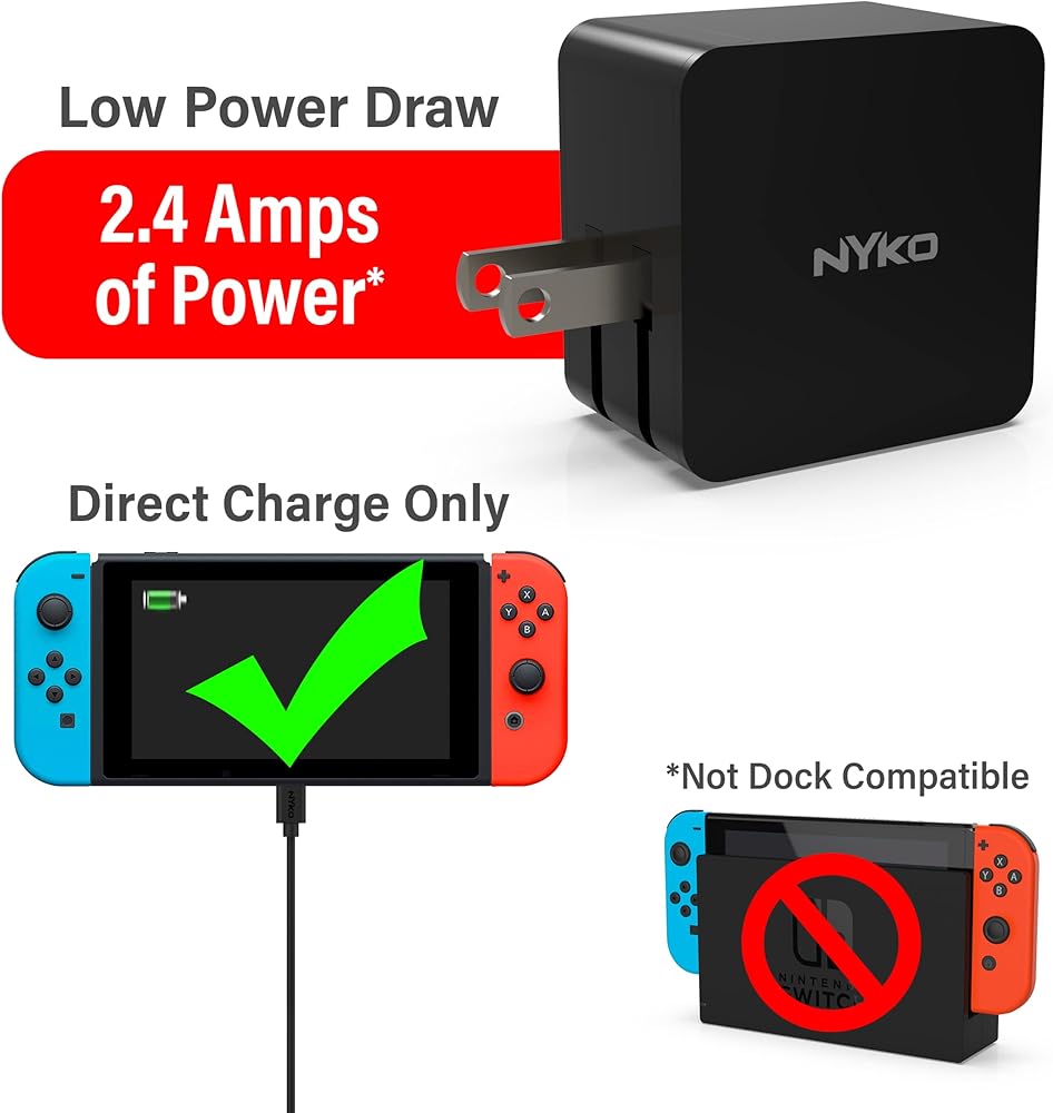 Experience fast charging for your Nintendo Switch and other Type-C devices with the Nyko 39W USB-C Fast Charger. This versatile charger lets you charge your Switch directly or through the dock, and can even be used as a replacement power cord for your dock. With its rapid charging capability of 15V 2.6A (39W), you can quickly recharge your device whenever you need to. Smart Power Technology dynamically adjusts voltage to any device up to 15V 2.6A (39W) for efficient and fast charging. Enjoy the convenience of this powerful charger for your Nintendo Switch, Steam Deck, and more.