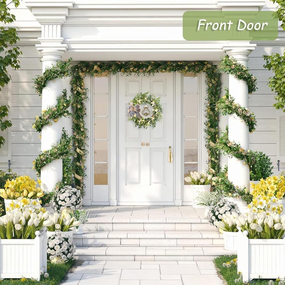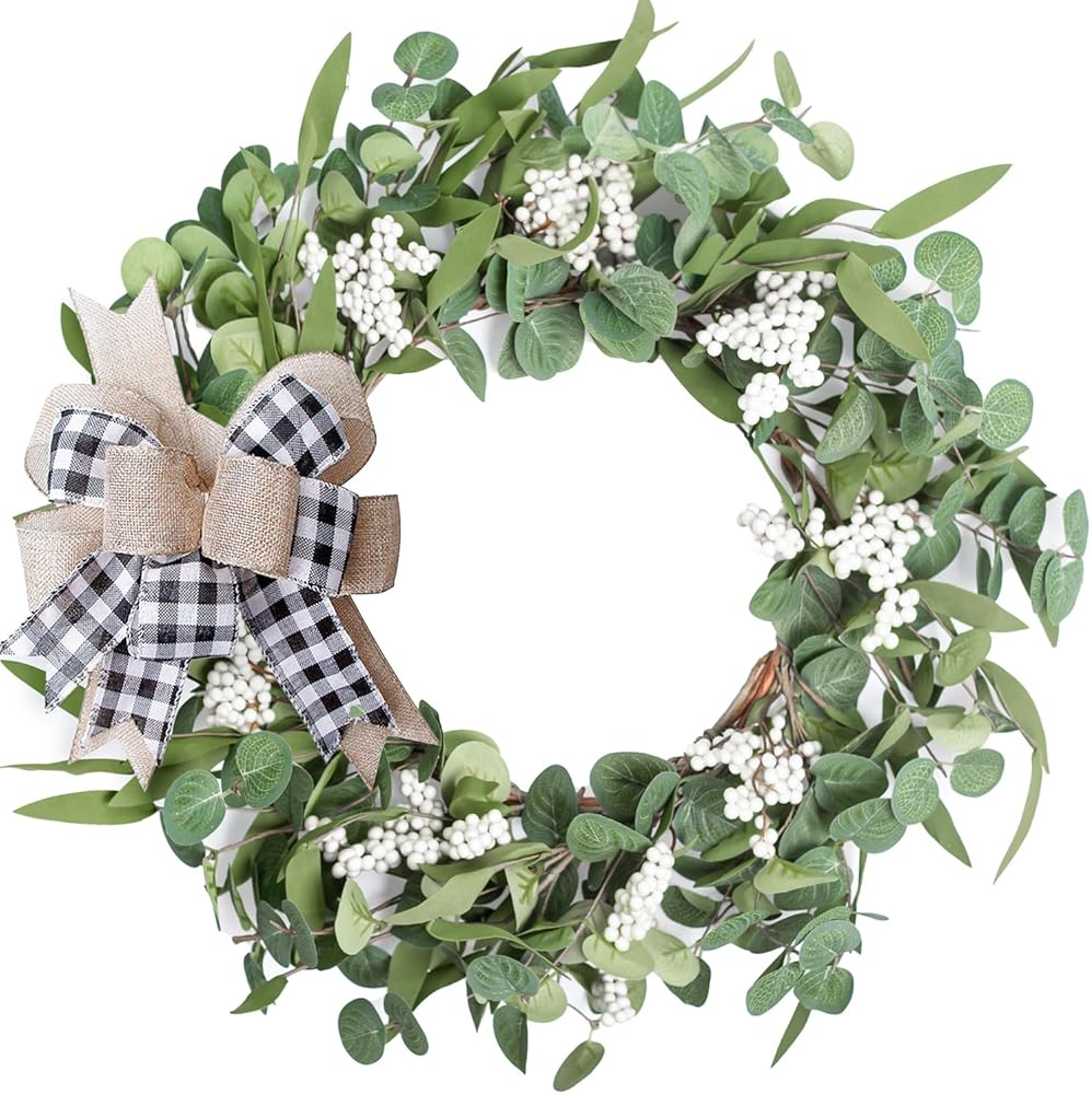 Artificial Eucalyptus Wreath for Front Door|20" Green Leaf Wreath for Window Home Porch Farmhouse Patio and Garden Indoor Outdoor Decor with Bow for Spring Summer Fall Winter