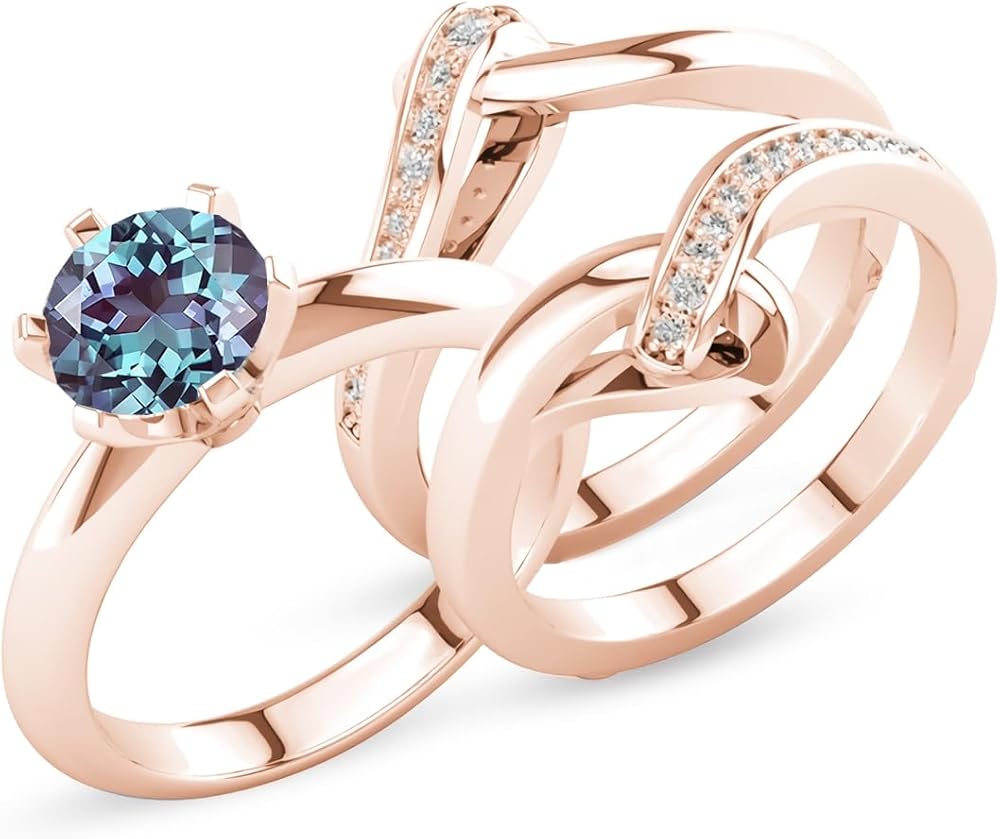 Gemstone Engagement Ring Set for Women 10K 14K 18K Solid Gold Gemstone Bridal Wedding Ring Set Wedding Band 3 Piece Wedding Ring Sets for Her Anniversary Promise Rings