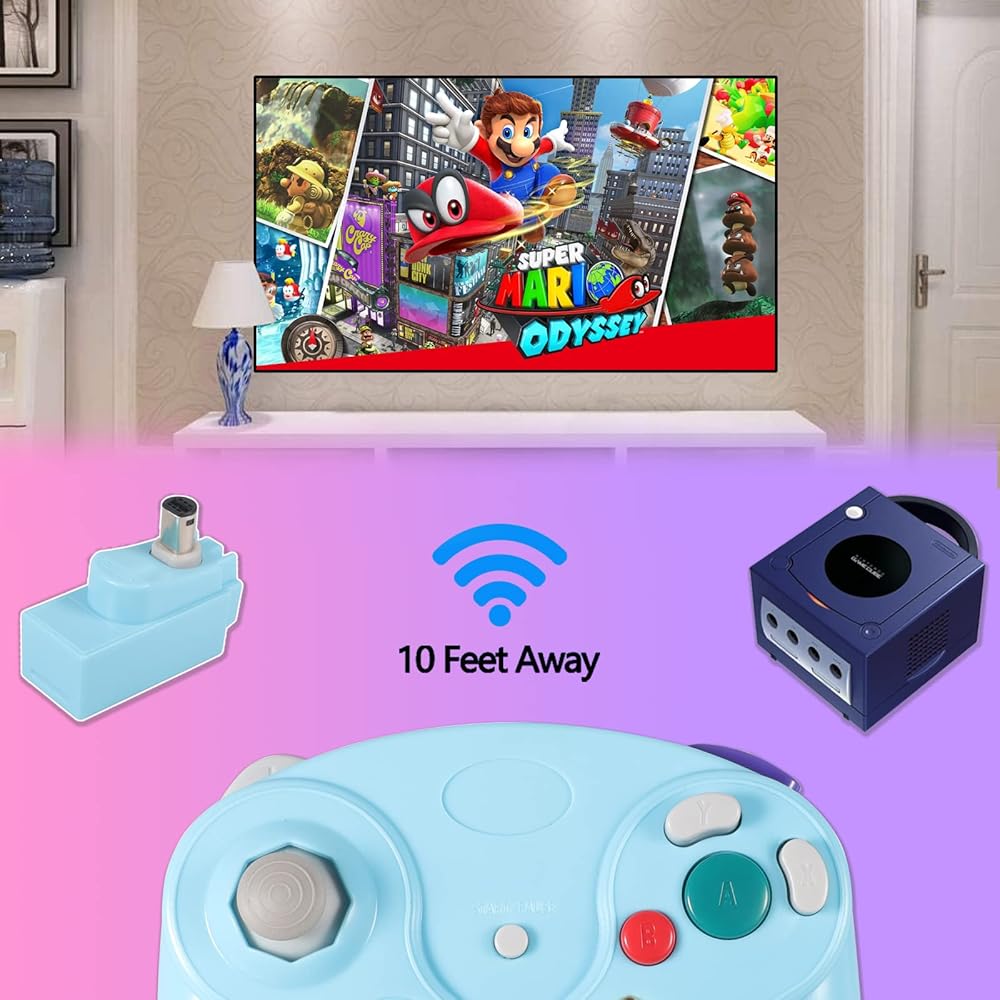🎮【Favorite Gift & Friendly Accompany】2 x wireless gamecube controllers and 2 x Receiver Adapter. It is suitable for all ages and is perfect for family gatherings or gatherings of friends. Helps to establish a more intimate parent-child relationships.Take it to play with the children and enjoy relaxing and happy family time.