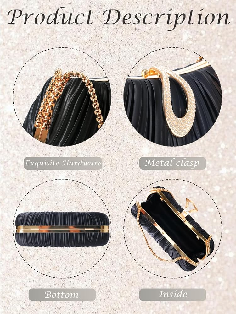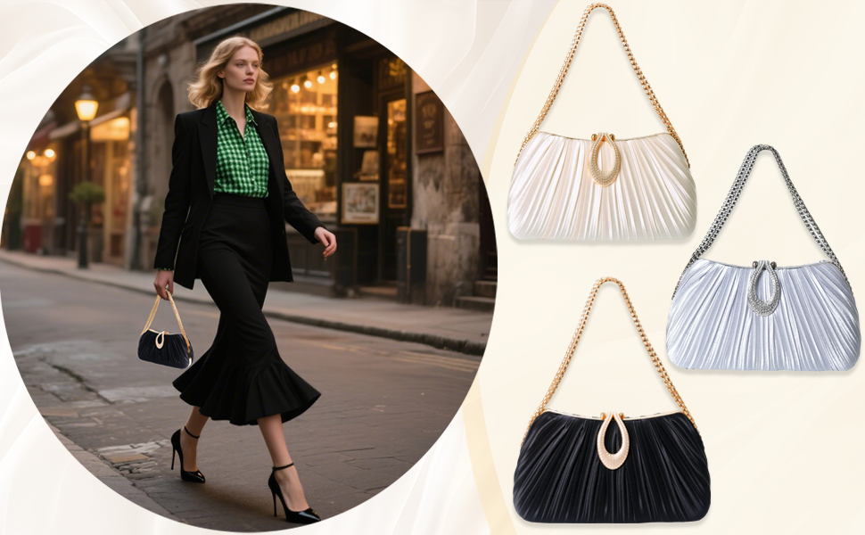 ⭐️ Premium Craftsmanship: Made from high-quality pleated silky fabric, our clutch purses for women deliver luxurious comfort and durability with tightly stitched lining, ensuring it withstands daily wear while feeling soft against your skin for any glamorous night out.
