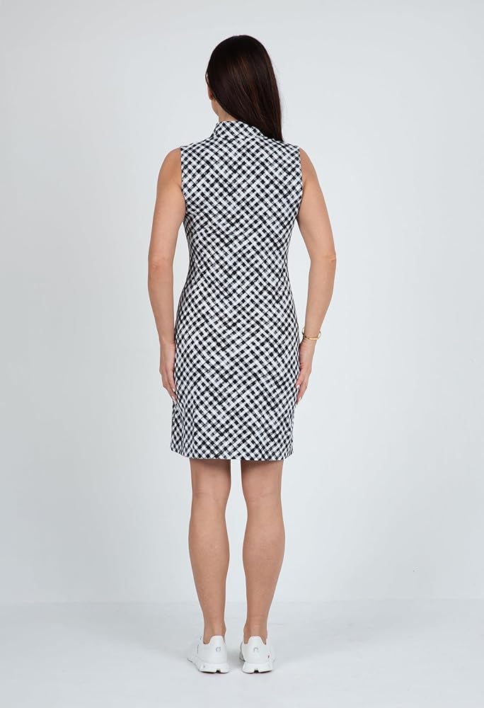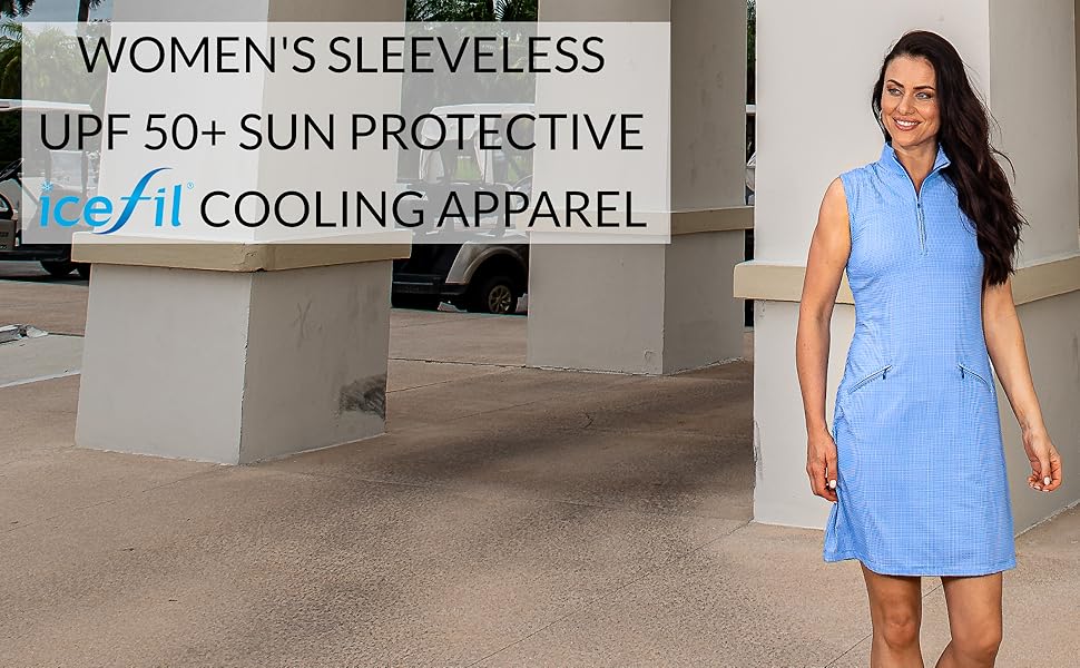 Transition seamlessly from the court to the clubhouse in this charming Sleeveless Zip Mock Neck Dress with pockets positioned at just the right angle for phone and tees storage. Made in all-new dynamic prints and our patented Icefil technology that interacts with your perspiration to lower your temperature by five degrees so you can keep cool on even the warmest days. The soft, lightweight, and UPF 50+ fabric keeps you protected and looking vibrant all day long.