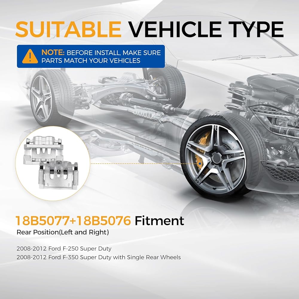 🚗Vehicle Fitment - 18B5077 18B5076 Rear Disc Brake Caliper Fit for 2008-2012 Ford F-250 Super Duty, 2008-2012 Ford F-350 Super Duty with Single Rear Wheels (More the Vehicle Detail, Please see the product description)