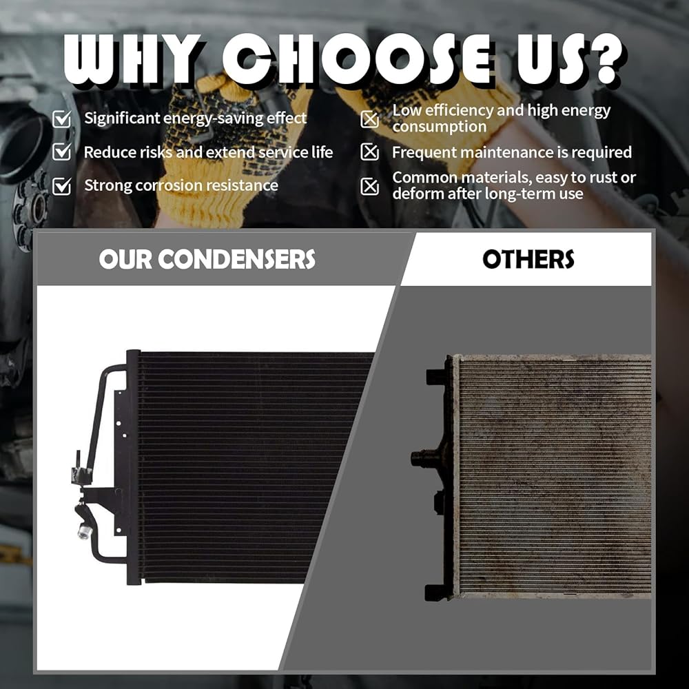 DURABLE MICROCHANNEL TUBING: Made with premium zinc-plated microchannel tubes for superior corrosion resistance and efficient refrigerant flow. Over 101% primary aluminum ensures maximum durability and long-lasting performance. Rust-proof design extends the condenser's lifespan
