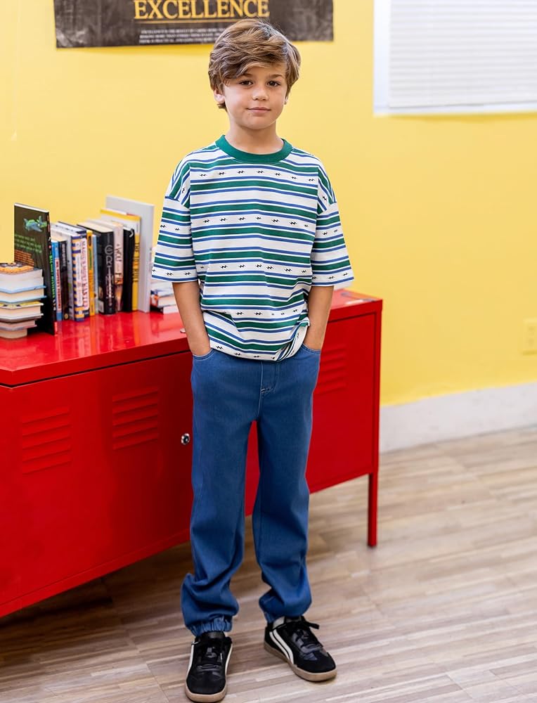 Soft & Breathable for Boys: These boys' jeans are made from soft, breathable fabric—gentle on skin, comfy like sweatpants, and ideal for all-day wear from school to play.