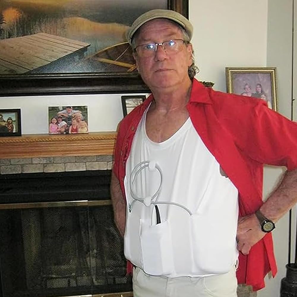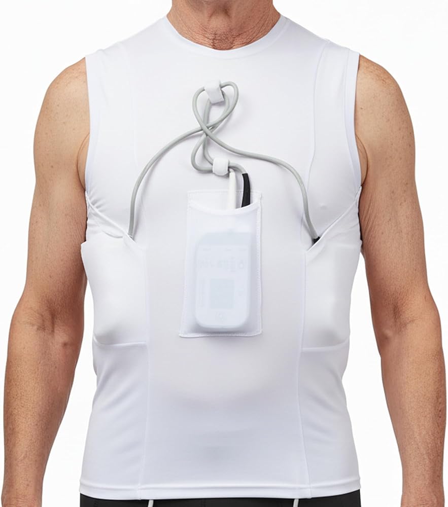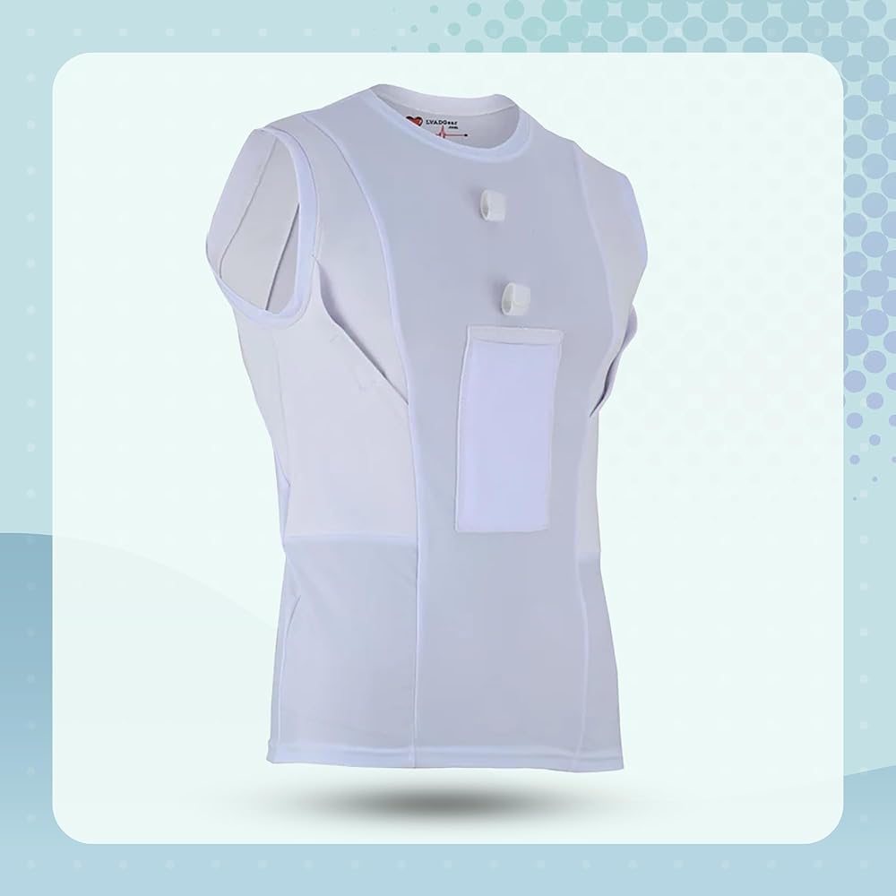 The LVAD Men's Tank Top for HeartMate 2 & 3 is engineered for comfort, durability, and security. Made from ultrathin spandex mesh, this tank top is breathable, moisture-wicking, and lightweight, helping LVAD recipients stay cool and comfortable during daily wear. The reinforced shoulders distribute the weight of LVAD batteries evenly, reducing strain on the body. Secure battery pockets with hook-and-loop closures hold devices firmly in place, while heat-reflecting layers and breathable fabric minimize heat buildup. A proprietary controller pocket system with elastic cinch tops ensures the HeartMate controller stays secure while allowing heat to dissipate away from the body. The discreet tank top design features a scoop neck and sleeveless fit, making it easy to wear under clothing without bulk. Built with double-stitched seams for strength, this LVAD tank top provides long-lasting reliability. Available in multiple sizes and colors, it offers a versatile solution for HeartMate 2 & 3 users seeking comfort, safety, and freedom in everyday life.