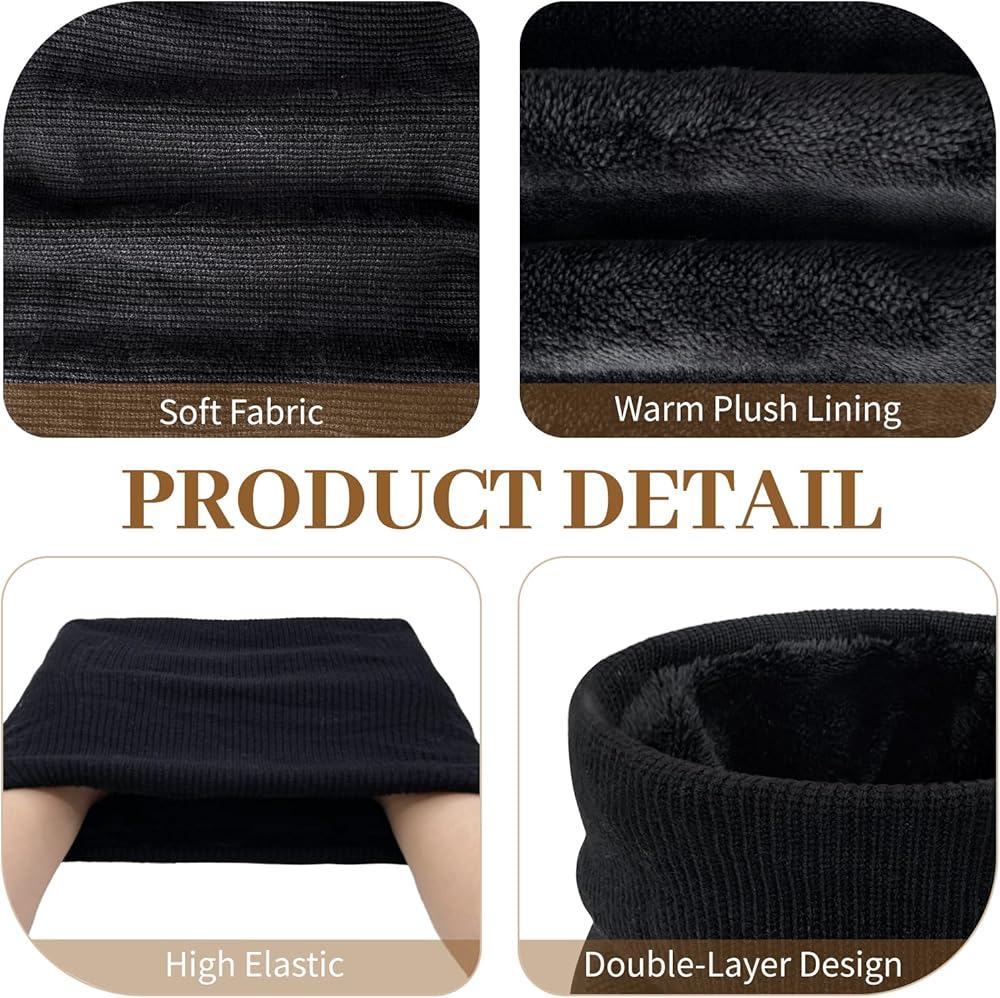 Soft, Cozy & Warm: These neck warmers for men women adopt high quality skin-friendly thermal yarn and dense plush fleece lining to enhance warmth keeping. The plush fleece inside is very soft and comfortable, you can feel the warmth on touch. The outer knit thermal shell is acrylic and inner lining is polyester.