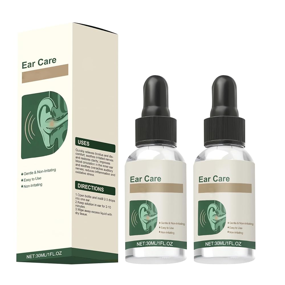 Ear Care Drops Gentle Formula 2PCS, Natural Ingredients, Relieve Tinnitus by Unblocking Secretions for Daily Ear Hygiene, Easy to Use & Portable for Men & Women