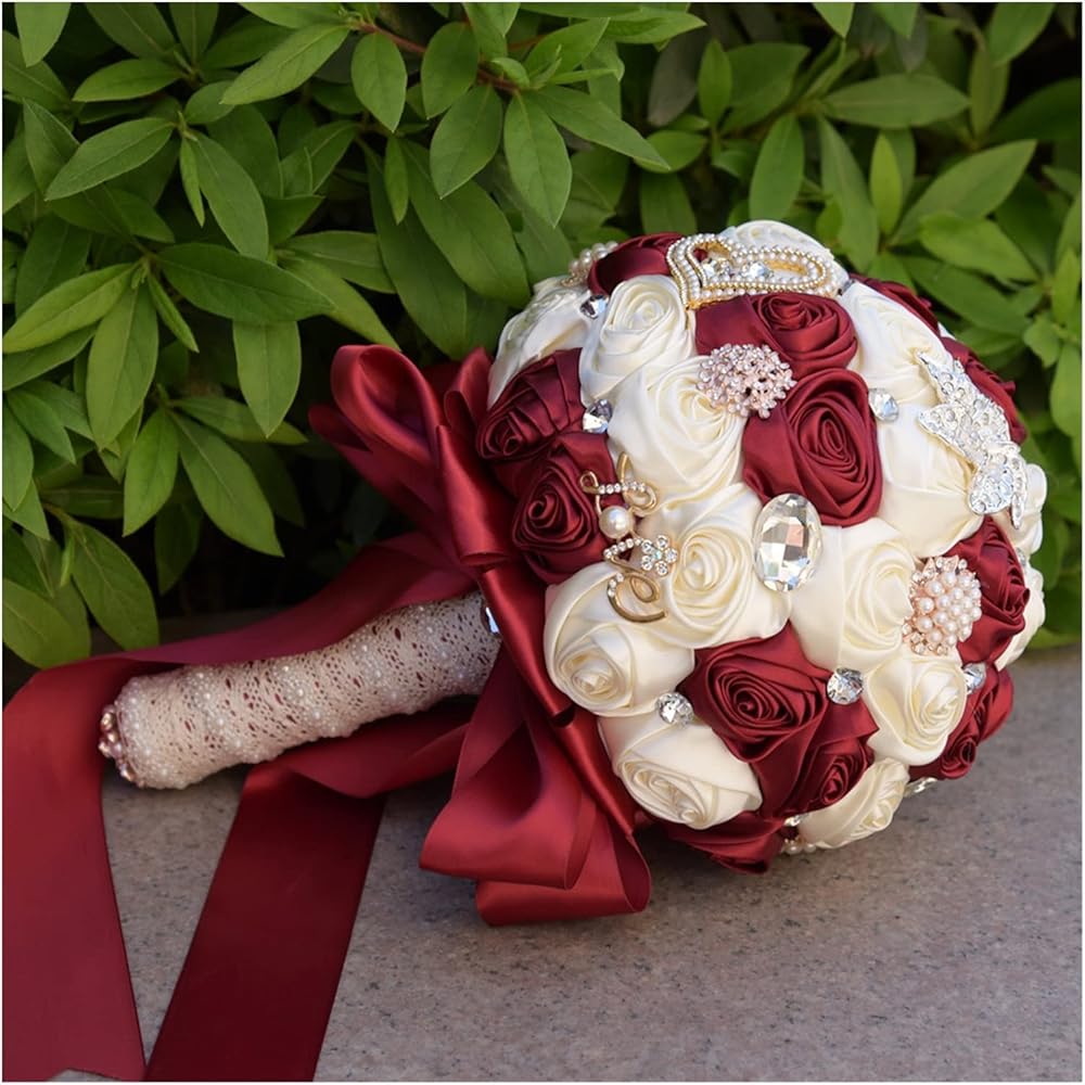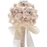 4 size champage and brown Jewelry Beaded Wedding Flower Bridal Bridesmaid Bouquets Ribbon Bouquets Diamond Brooch Bouquet