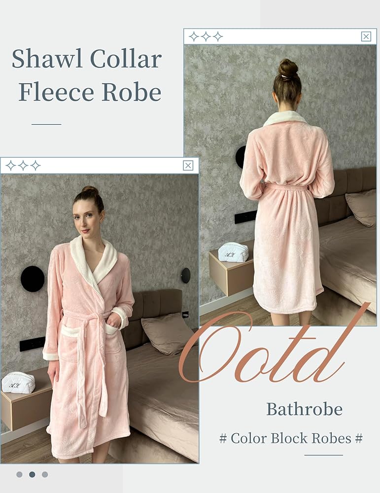 Contrast Color Design: The color block robes feature a shawl collar to provide extra warmth around your neck and shoulders, mid-calf length added convenience after you shower. The contrasting color design of the collar and cuffs makes the bath robe more distinctive and creates a luxurious look.