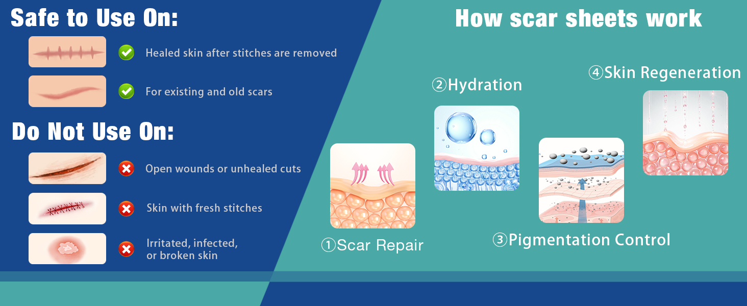 [Safe for Sensitive Skin] Our scar patches are free from latex, Teflon, and harsh additives—perfect for all skin types, including children and those with sensitive skin. The non-irritating formula ensures a gentle healing experience with no side effects.