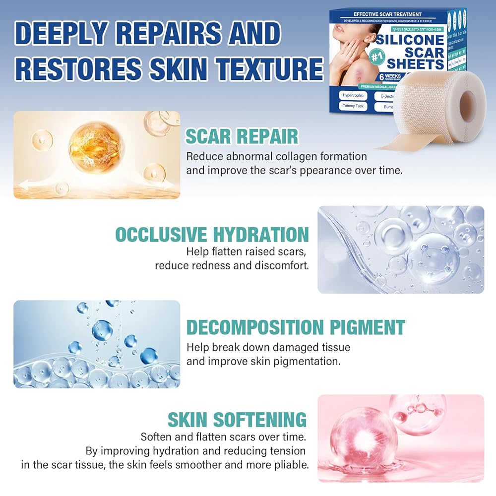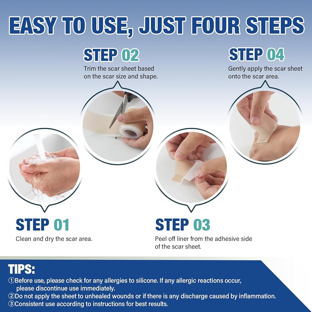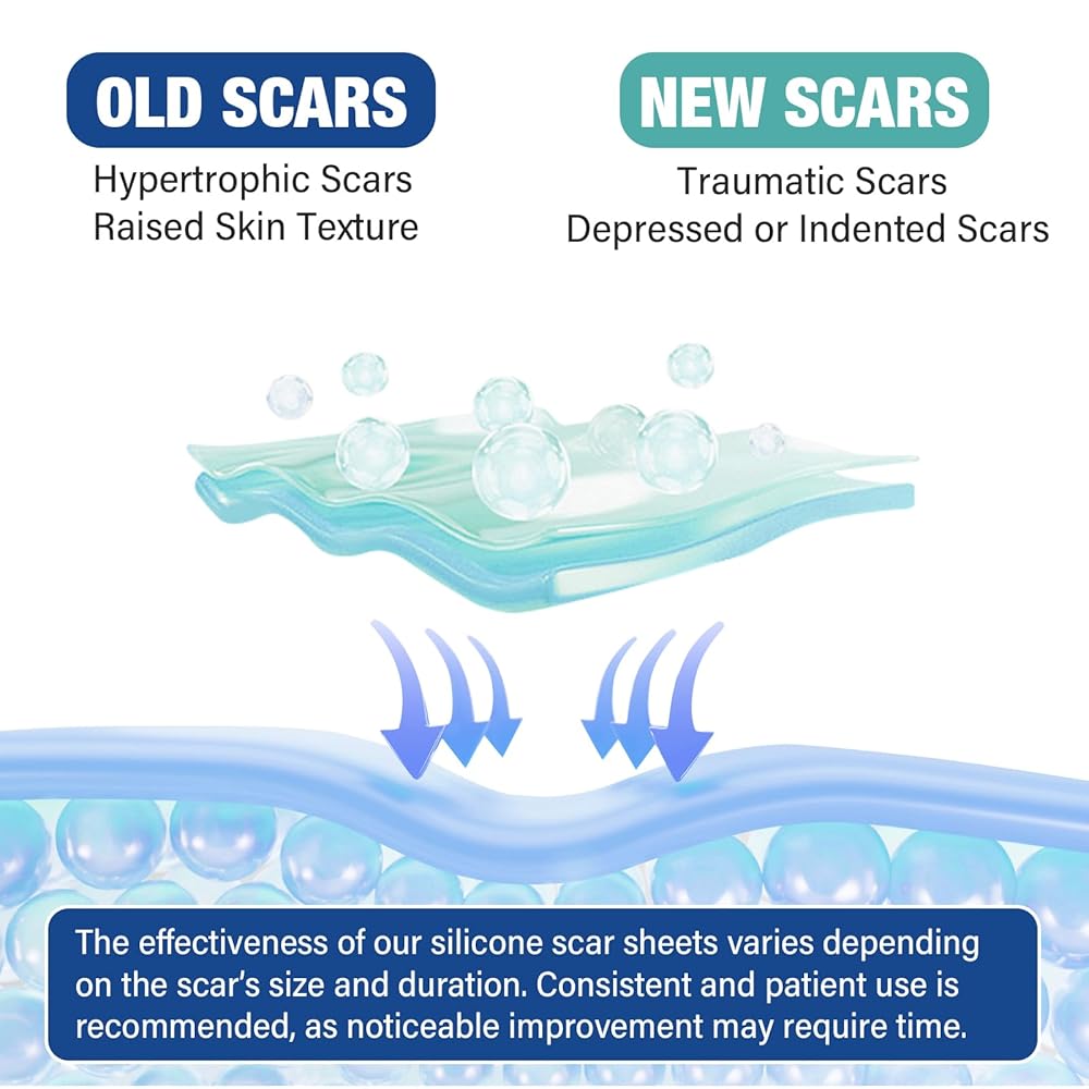 [Effective Scar Treatment Solution] Made with 100% medical-grade silicone, these scar sheets are clinically proven to visibly improve the appearance of both old and new scars. They help flatten, soften, and fade scars by enhancing skin hydration and regulating collagen production.