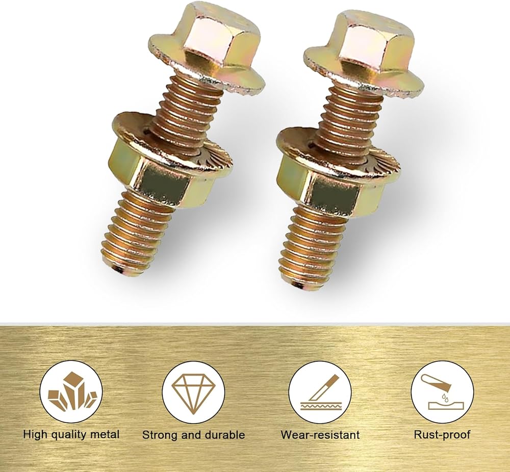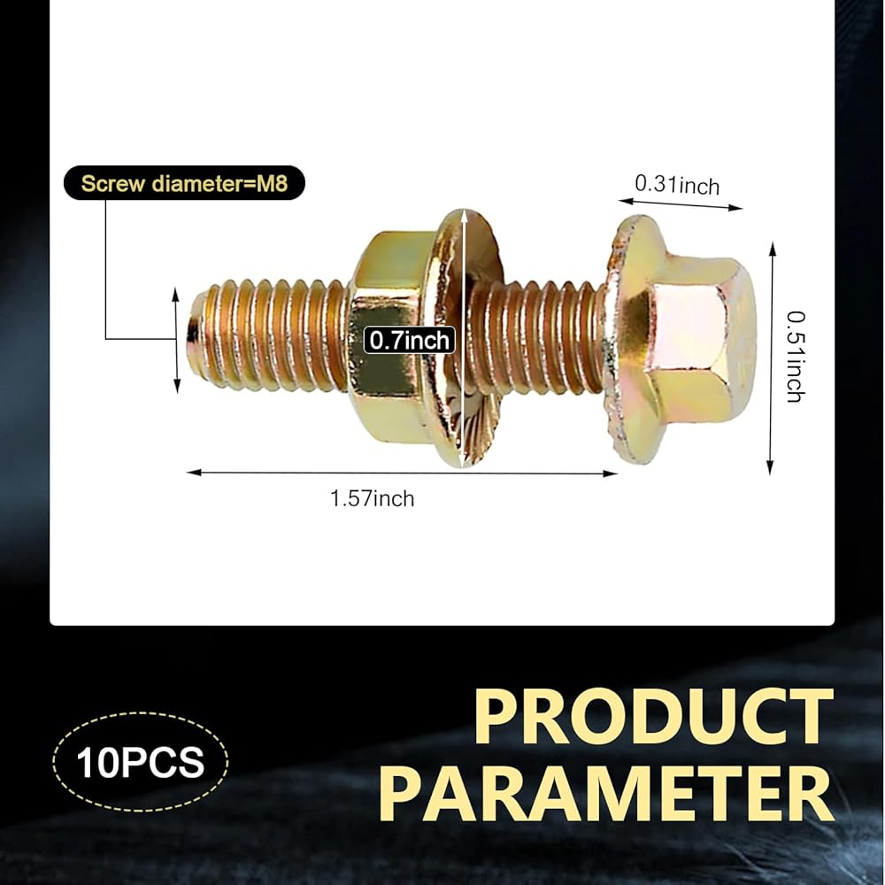 Packaging: This flange hexagon screw kit contains 10 x screw rod and 10 x screw cap respectively. The sufficient quantity is sufficient to meet your use, replacement and daily maintenance of the gravity load parts of the car. Be sure to check the status of the bolts regularly. If they are loose or damaged, they need to be replaced in time.