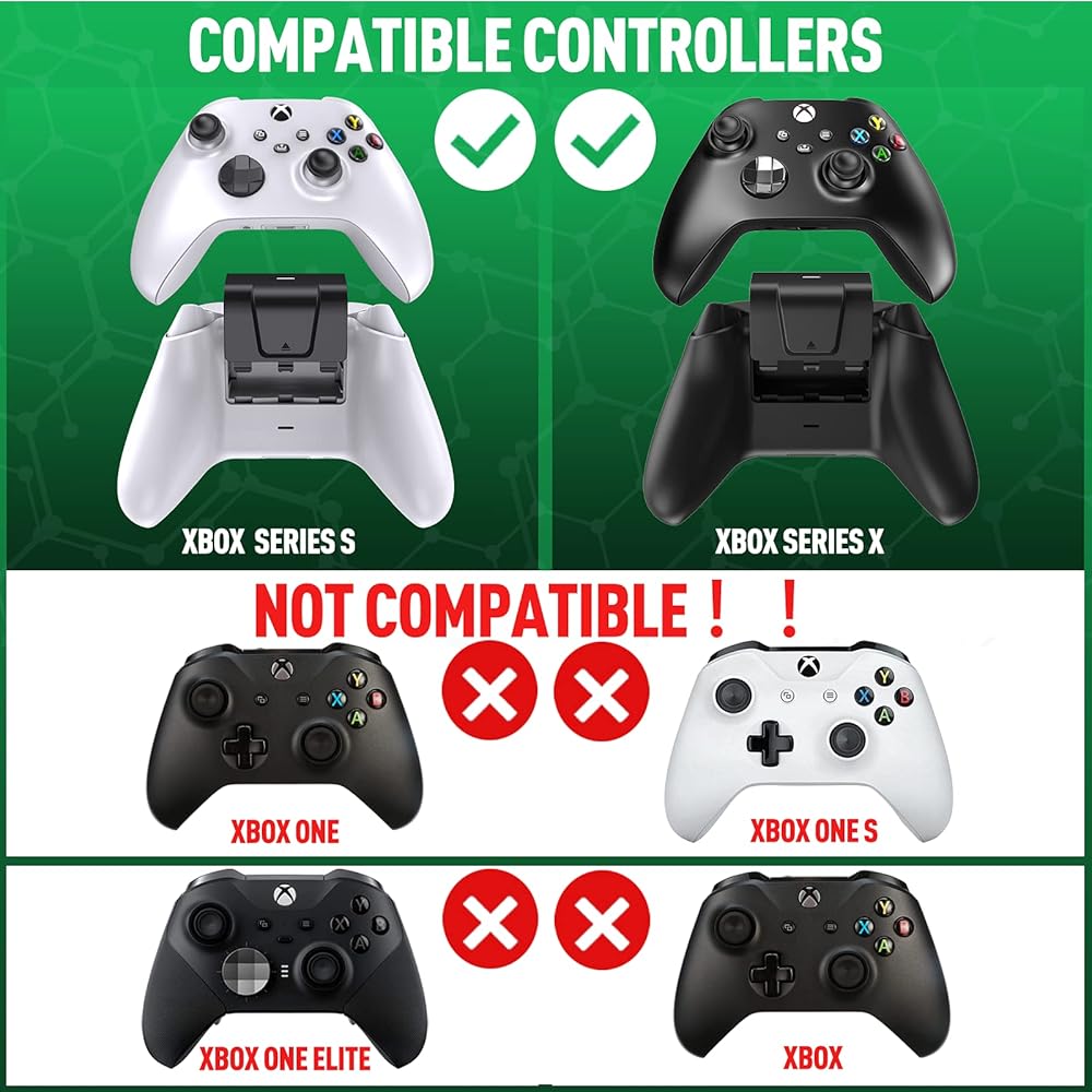 ⚡【Easy to Use】 The rechargeable battery pack is a high-quality battery pack that runs perfectly to charge your Xbox Series X/S controllers. About the charging way C, it also works on Controller Charger Compatible with Xbox One Series X/S (2020), YCCTEAM Controller Charging Station Dual Charging Dock with 2pcs 1000mAh Rechargeable Battery Pack. When connecting a power supply, the LED indicator flashing red and green alternatively. It lights red in charging, while it lights green in fully charged