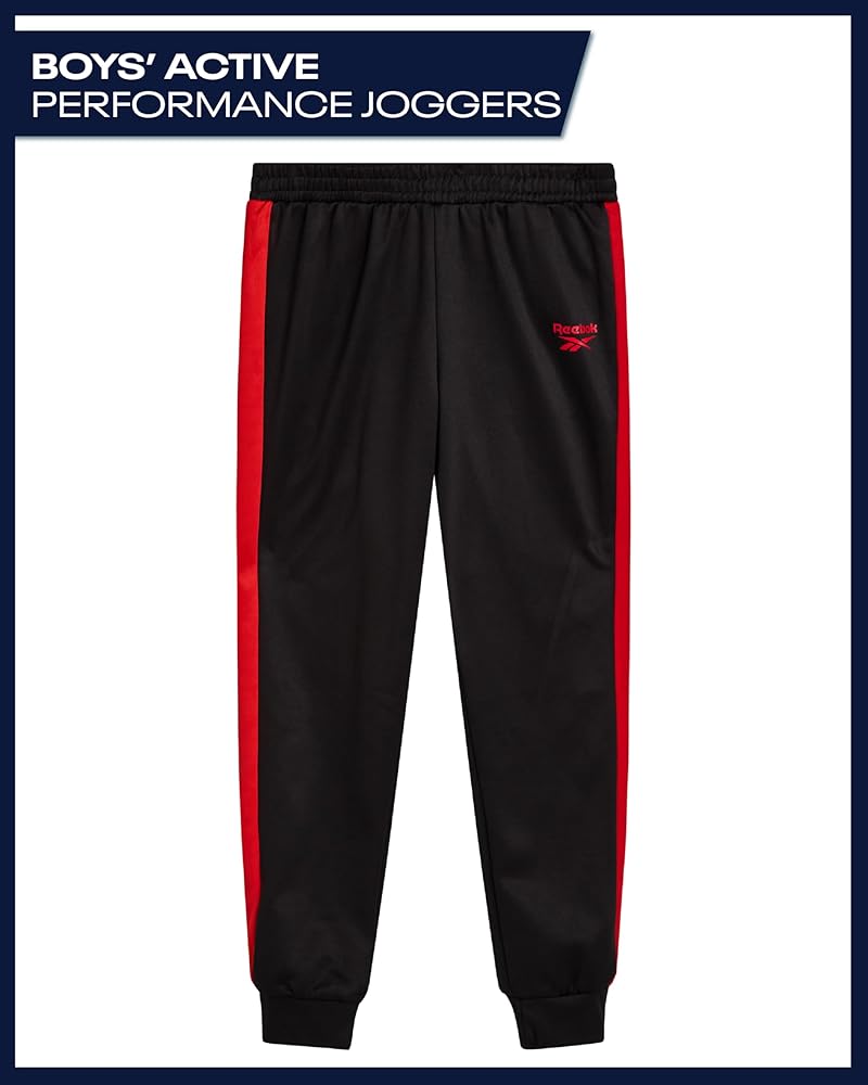 Upgrade your boy's wardrobe with these Reebok boys sweatpants, the ultimate blend of comfort, performance, and style for active kids. Crafted from smooth tricot fabric, these boys joggers are designed for school, sports, and weekend wear, offering durability and flexibility that moves with him. Whether he's in need of boys pants size 8, boys pants size 10-12, or boys pants size 14, these sweatpants for boys provide a reliable fit for every stage of growth. These boys athletic pants are built with an elastic waistband and tapered leg design that delivers a modern, sporty silhouette without sacrificing comfort. Parents love these as back to school clothes for boys, while kids appreciate the relaxed fit that makes them perfect for gym class, playground fun, or lounging at home. As part of clothes for teen boys, they're versatile enough to wear with hoodies, tees, or jackets for a variety of looks. Engineered for all-day comfort, these boys jogger pants offer breathable coverage that keeps him cool during activity and cozy while resting. The soft tricot fabric is easy to wash and maintains its smooth feel, making them a long-lasting option in kids clothes boys collections. Available in boys sweatpants size 8, boys sweatpants size 10-12, and boys sweatpants size 14-16 youth, these boys clothing essentials fit a wide range of body types, including husky boys clothes. Durability meets performance in every stitch. Reinforced seams ensure these boys sweats withstand climbing, running, and everyday play. Parents can rely on these pants as school clothes for boys, boys' activewear, or even back to school clothes for teen boys, while kids enjoy the sporty look of boys track pants and joggers for boys. Whether paired with sneakers and a tee for practice, or layered with a hoodie for casual weekends, these sweatpants for teens strike the perfect balance of comfort and athletic style.