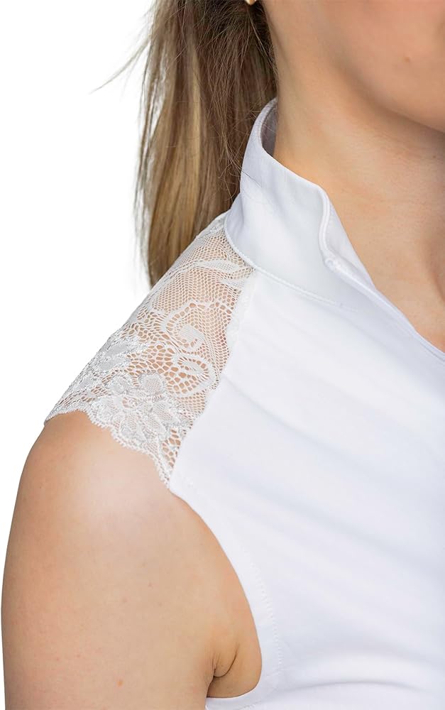 This season our elevated, A1/4 zip tank features our signature black and white climbing vine print and soft, stretchy, feminine lace insets at the shoulders. UPF 30, (apply sunscreen under the lace) A¼ zip, soft 4-way stretch fabric in a contemporary fit
