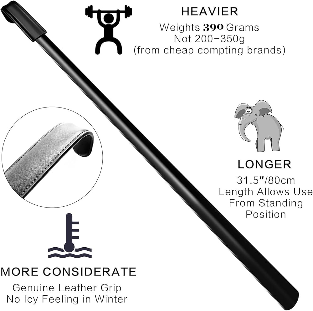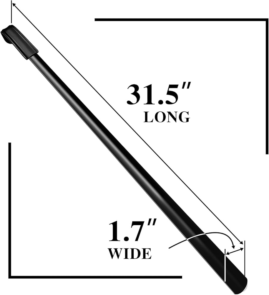 31.5inch Extra Long Handled Metal Shoe Horn,Extra Long Stainless Steel Shoe Spoon for Back Pain,Steel Shoehorn For Boots,Shoehorn for Elderly, Senior, Children, Pregnant Women-Black & Heavy Duty