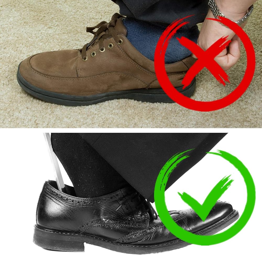 The long length of Ofitmagic metal shoehorn allows you to put on and take off your favorite shoes without excessive bending, helping to prevent muscle strain or aggravate existing conditions such as joints inflammation, sciatica, or just general aches and pains.