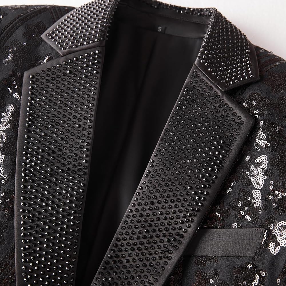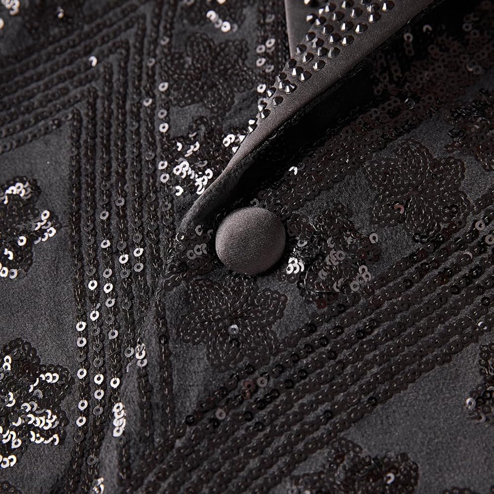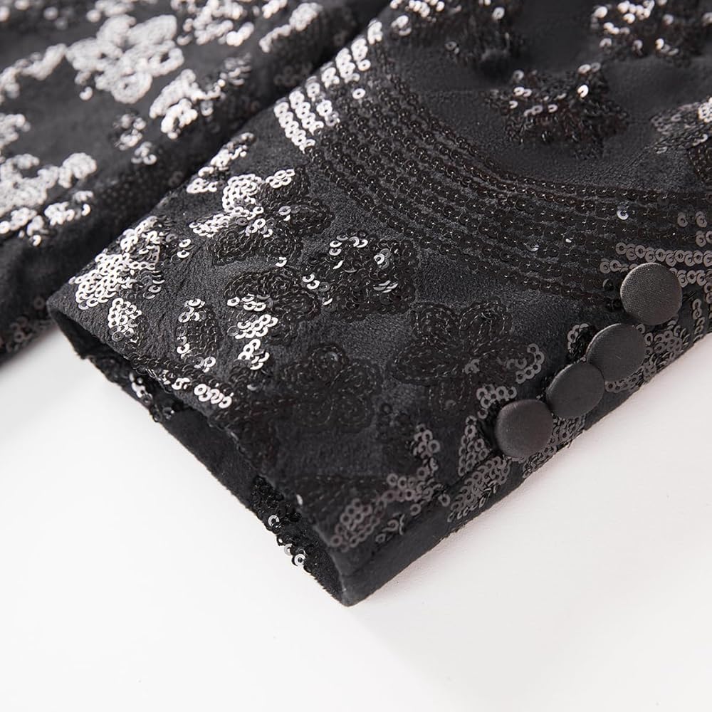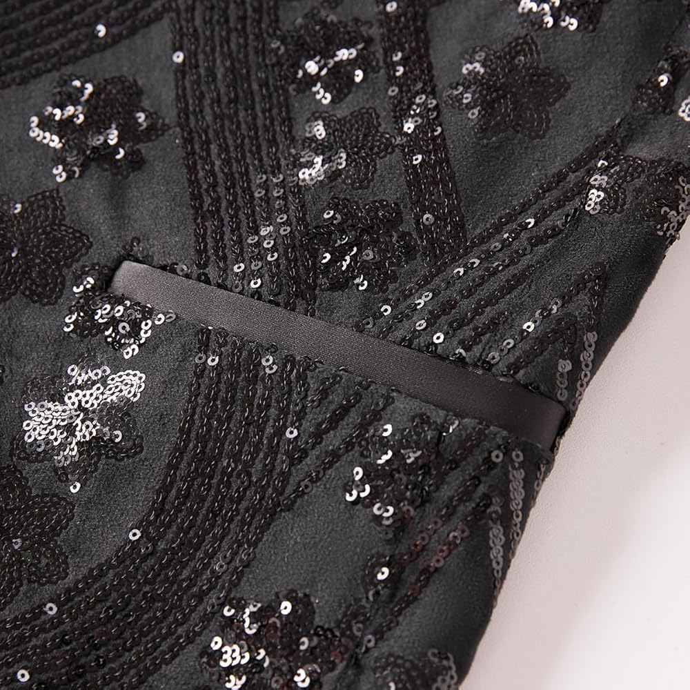 The whole body is covered with high-density sequins, interweaving flowers, curves and geometric patterns to create a three-dimensional light and shadow effect.