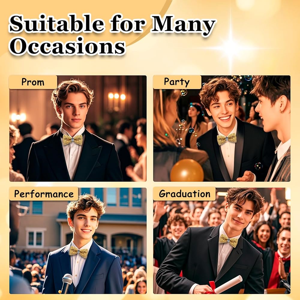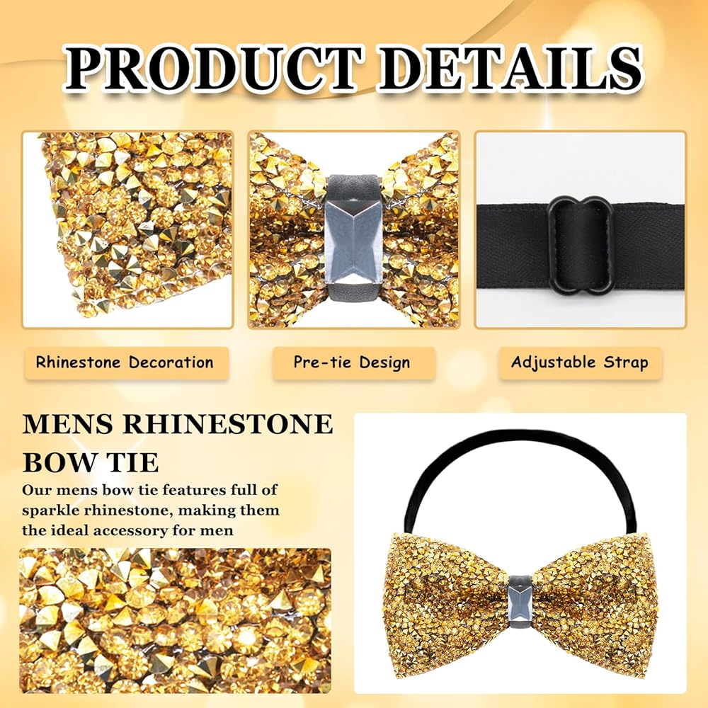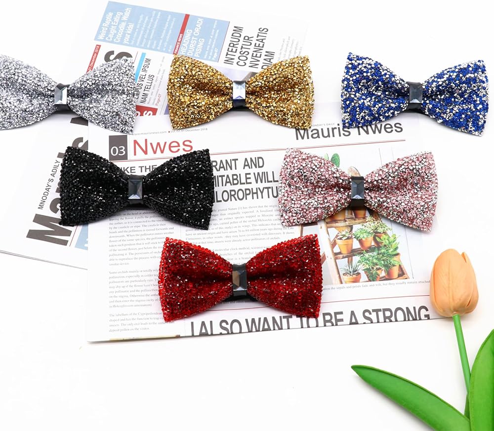Versatile for Every Moment: This rhinestone pre tied bow tie for men shines at weddings, banquets, performances, balls; This sequin bow tie also adds flair to weekend parties, turning casual chats into memorable moments