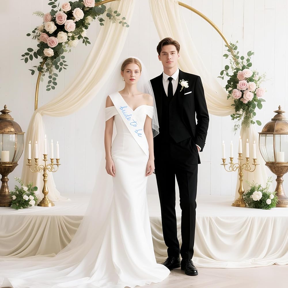 【Thoughtful Bridal Gift】- A uniquely meaningful gift for bride. From engagement photos to after-party celebrations, this bride sash and veil set is the perfect choice for any occasion. Due to folding and transportation reasons, there will inevitably be varying degrees of creases and wrinkles after receipt. You can iron it to restore it to its original state.