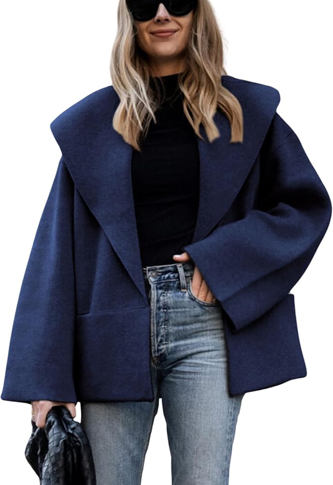 The wide shawl collar and relaxed silhouette create a chic, effortless look, while the cropped length pairs perfectly with high-waisted jeans or midi skirts