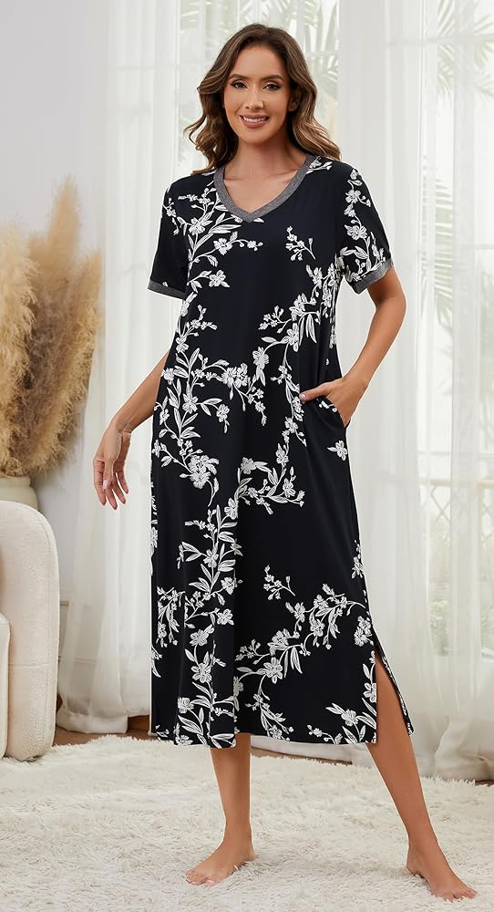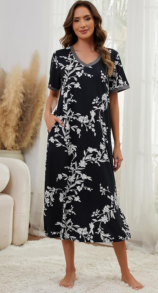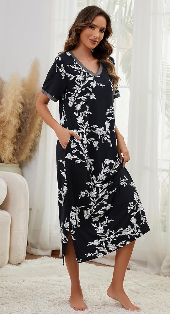 Versatile: Long nightgowns for women are available in a wide range of trendy floral pattern, cute and flowing, which are great for daily wearing, or as sleep dress, lounge dress, moo moo nightgown and house dresses for women with pockets