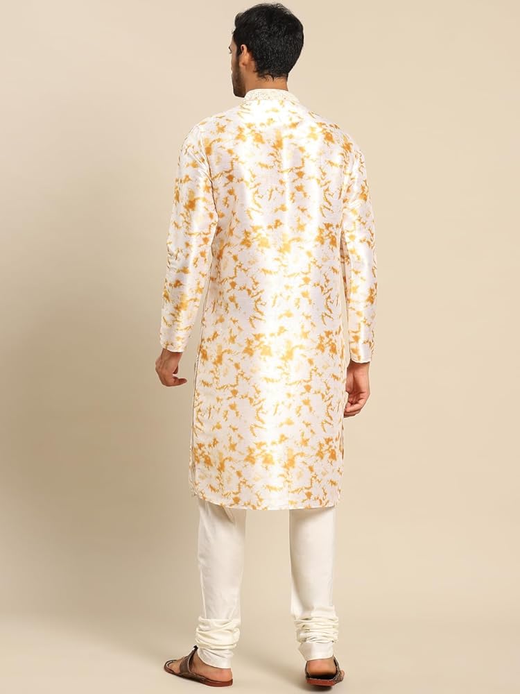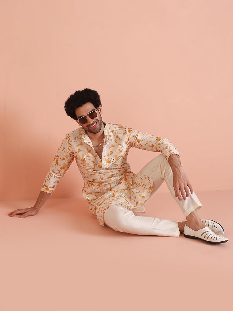 Celebrate culture in comfort with the KISAH Men's Printed Kurta, a stylish blend of tradition and modern flair. Designed for men who appreciate elegance, this long tunic features a classic print, a crisp Mandarin collar, and a button-down front, all crafted in a soft, breathable cotton blend ideal for warm weather. Whether you're dressing up for a wedding, Diwali, Eid, Holi, Rakhi, or a family gathering, this mens kurta is the perfect way to showcase refined Indian style. The regular fit offers comfort for all-day wear while maintaining a tailored look. Pair it with your favorite pajama or churidar (not included) to complete the outfit. Available in sizes S (38) to XL (44), it's a reliable choice for festive moments or cultural events. Looking for a meaningful present? This kurta also makes a great gift for men—a timeless piece suited for birthdays, weddings, and celebrations.