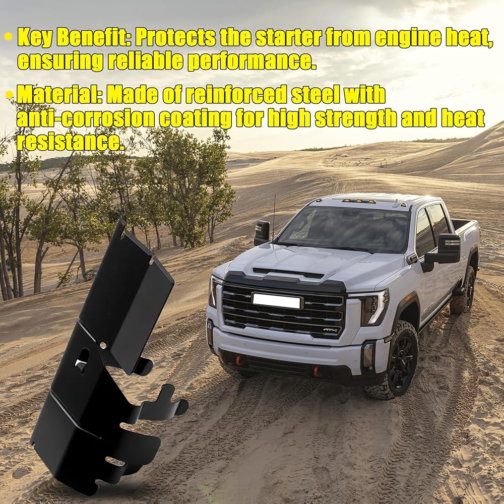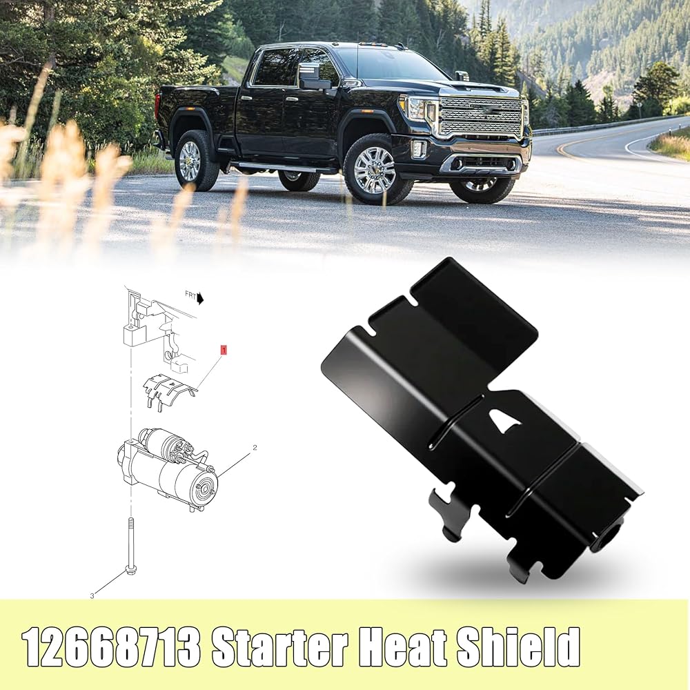 Fit for GMC 1999-2015 Sierra 2500 1999-2015 Sierra 3500 2000-2018 Sierra 2500 HD 2000-2018 Sierra 3500 HD 2001-2013 Yukon XL 2500 2003-2013 Savana 2500 2003-2013 Savana 3500 Fit for Chevrolet 1999-2015 Silverado 2500 1999-2015 Silverado 3500 2000-2018 Silverado 2500 HD 2000-2018 Silverado 3500 HD 2001-2013 Suburban 2500 2003-2020 Express 2500 2003-2020 Express 3500 Fit for Cadillac 2003-2014 Escalade ESV 2003-2014 Escalade EXT Fit for Hummer 2009-2010 H2 2009-2010 H3 Alpha 🔧 Key Features Replacement Part Number Fits GM part numbers 12668713, 12588400, 12585367, 12623360, and others for precise compatibility. Material Quality Made from reinforced steel with anti-corrosion coating, built to withstand high engine bay temperatures. Heat Protection Effectively reduces heat transfer to the starter motor, preventing overheating and potential failure. Easy Installation Designed for direct fitment with factory mounting points, ensuring hassle-free replacement. 🛠 Installation Instructions Turn off the vehicle and disconnect the battery. Remove the existing starter heat shield if present. Align the new heat shield with factory mounting points. Secure with original bolts and verify proper fit. Reconnect the battery and test vehicle start function. No modifications or extra tools required, installation is straightforward and efficient.