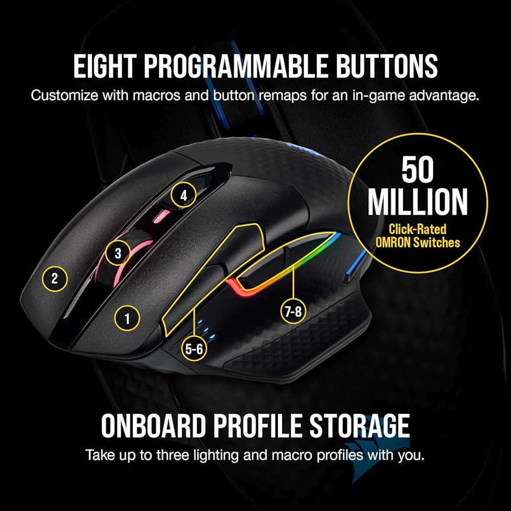Powerful CORSAIR iCUE software lets you assign macros, adjust polling rate, customize RGB lighting effects synchronized across all of your iCUE-compatible devices, and much more.