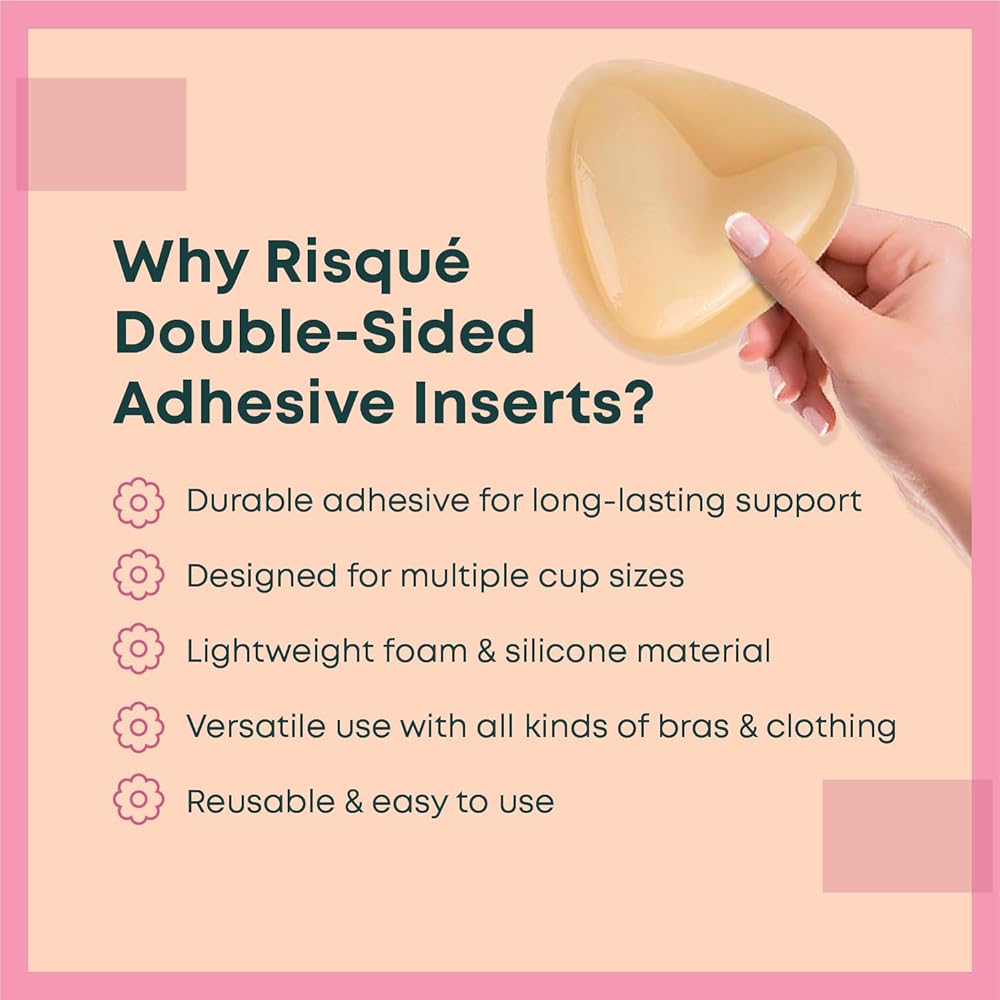 Size A Double Sided Sticky Bra Inserts Reusable | Push Up Lift Self-Adhesive Pads for Strapless, Bikini, Swimsuit, and Sports Bras | Comfortable, Invisible Support for a Natural Look | Long-Lasting