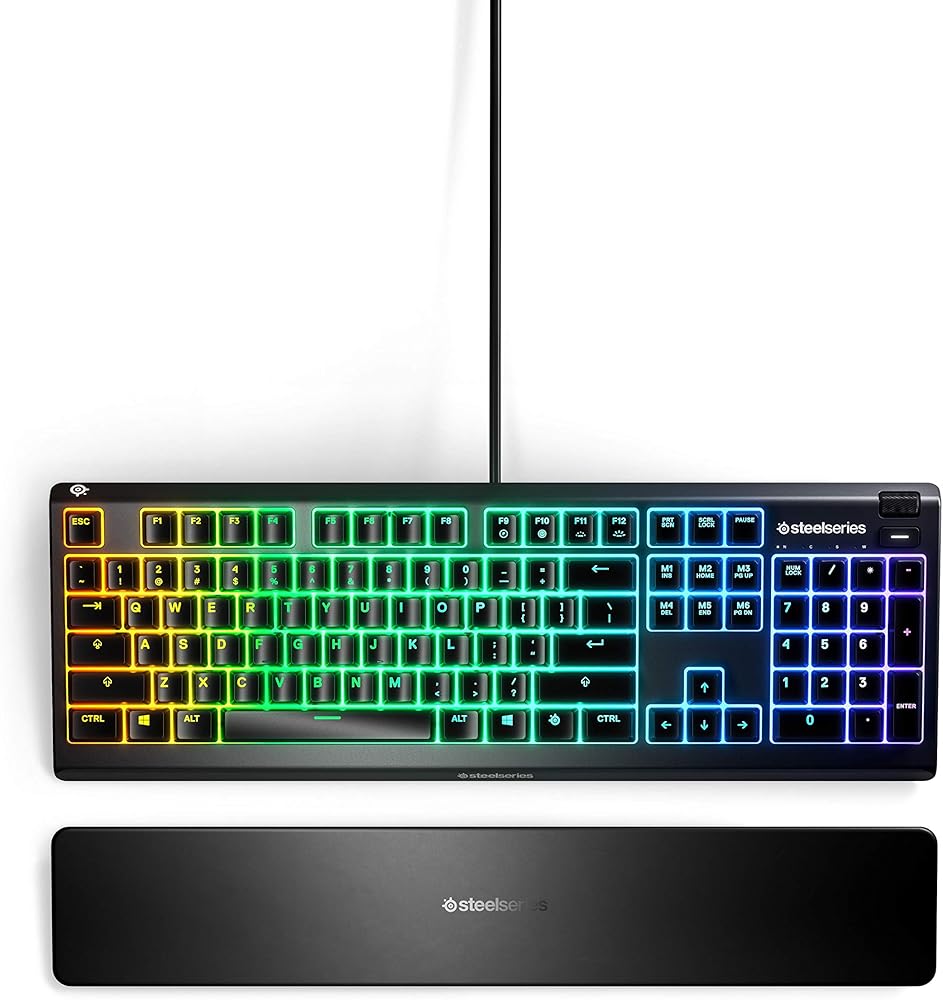 SteelSeries Apex 3 RGB Gaming Keyboard – 10-Zone RGB Illumination – IP32 Water Resistant – Premium Magnetic Wrist Rest (Whisper Quiet Gaming Switch) (Renewed)