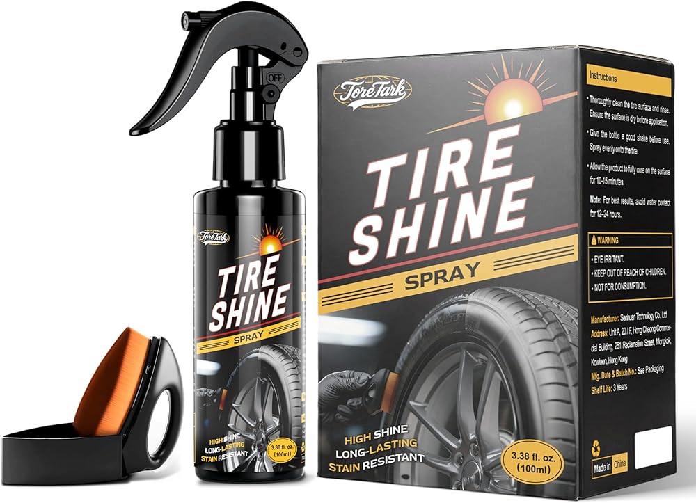 DEEP BLACK SATIN FINISH: Toretark Tire Shine Spray delivers a deep, wet-looking gloss instantly—transforming tires to a showroom-ready appearance with lasting shine and exceptional visual depth