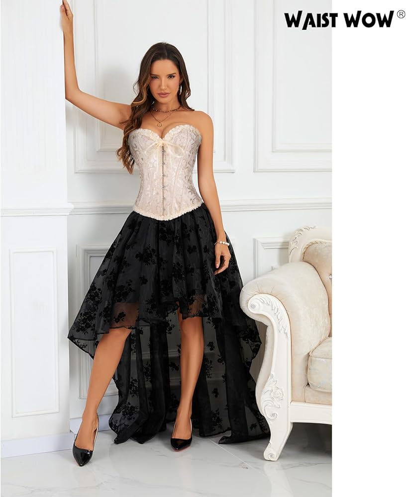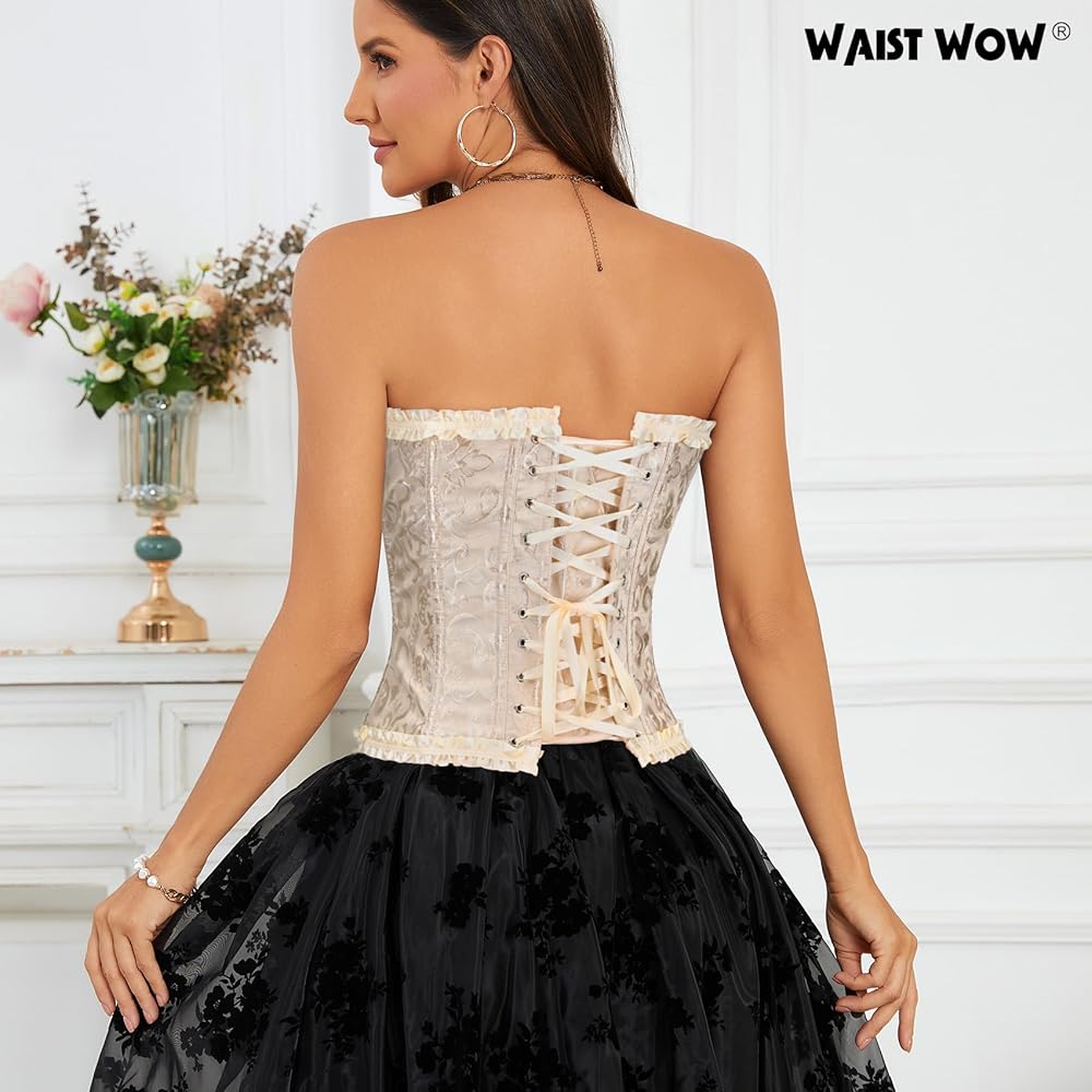 Steampunk Corsets Features:This women's vintage corset features front hook-eye closure and adjustable back lace-up ribbons for a customizable fit, with a modesty panel for back coverage and plastic boning for structured support. It sculpts waist and chest curves beautifully, ideal for party or daily waist training.A waist corset will make you feel comfortable and confident in your body.masquerade corset/rapunzel corset