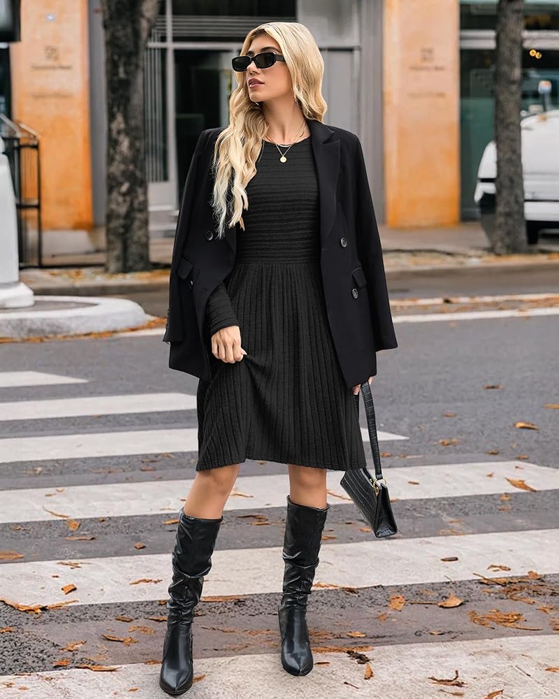 【Soft Fabric】Made of 90% polyester and 10% spandex, this sweater dress feels incredibly soft against your skin. It has just the right amount of stretch for a flattering fit that moves with you, keeping you warm and cozy all day long.