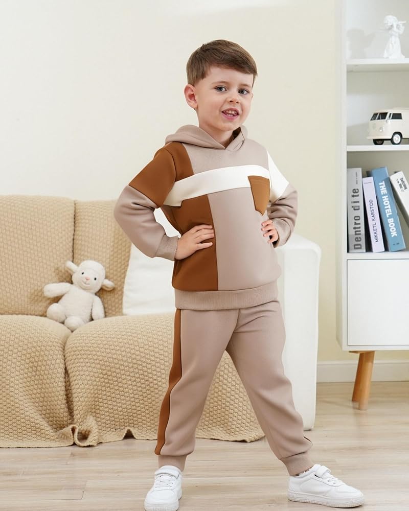 Stylish Design:This boys' clothing sets feature a color block hoodie sweatshirt matching with comfy elastic waistbands jogger pants.Unique and stylish look,easy pull-on design with a chest pocket and fun color blocking makes it perfect for playtime or preschool.Boys love the sporty details.