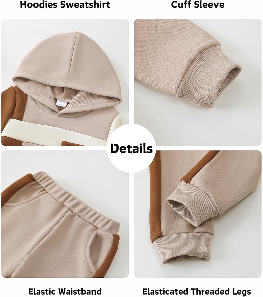 Soft&Skin-Friendly Fabric:Little boys clothes made from high-quality,breathable,and cozy fabric, this fall winter boys clothes offers a soft touch on your child's skin.Keep your little warm and comfy in this boys' hoodie sweatsuit set where indoor lounging or active outdoor play!