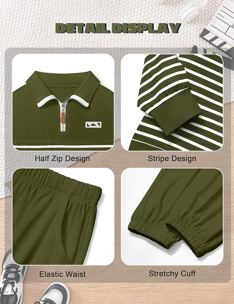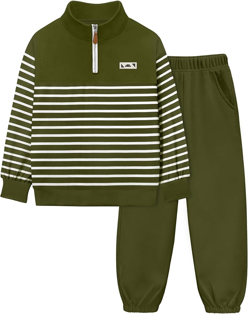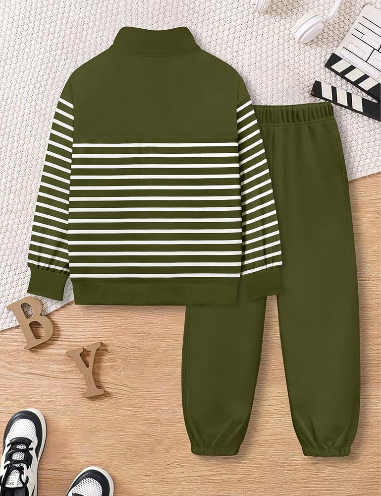 Stylish Design: The kids clothes are designed with stylish quarter zip stand collar, dropped shoulders long sleeves striped sweatshirt pollover top, matching with solid color sweatpants. Featuring a vibrant and eye-catching design with a trendy outlook, making your boys stand out from the crowd.