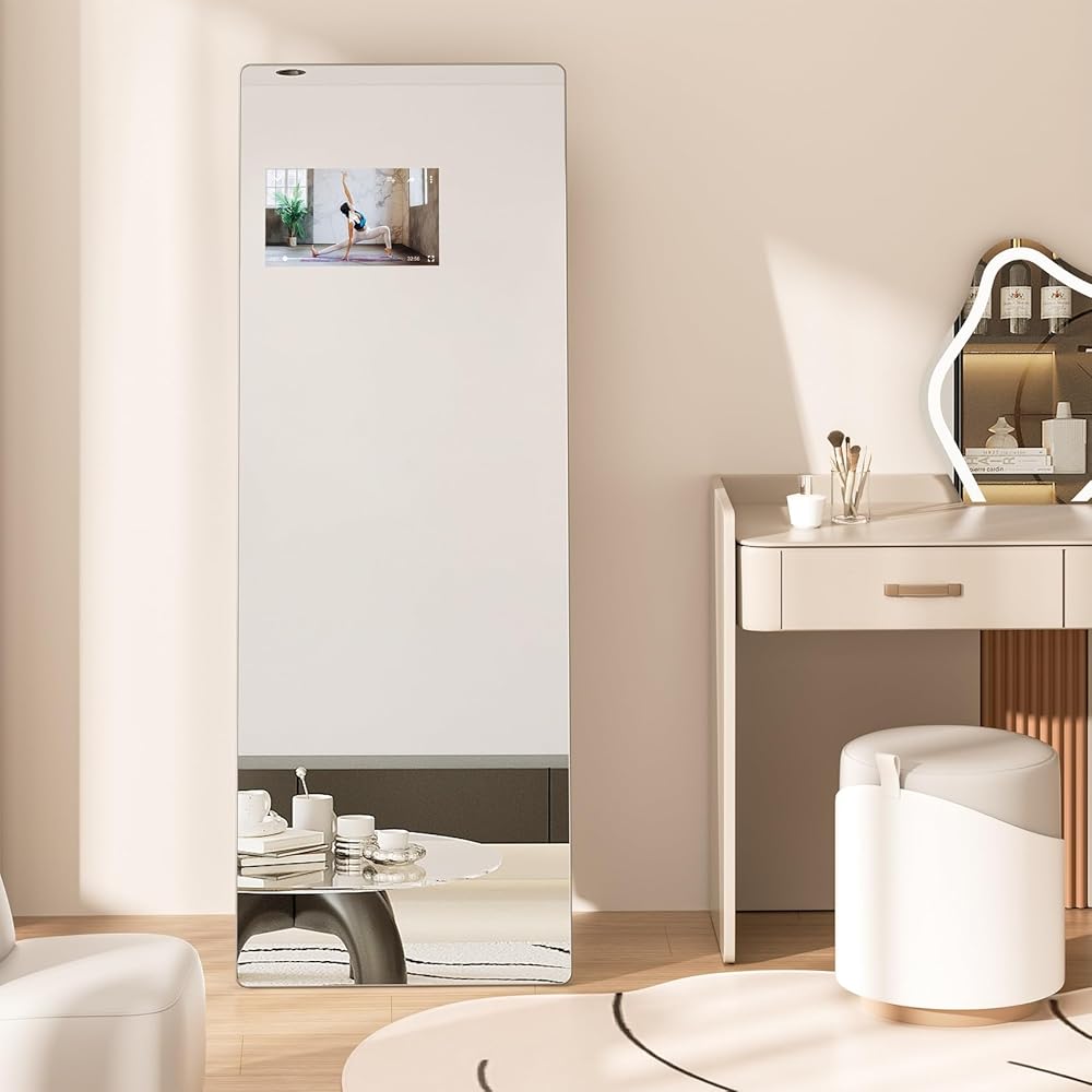 Home Gym Mirror - Our full body mirror has a built-in 14 inch projector screen. You can cast the video from your phone onto the mirror and follow it to do at-home workouts, such as yoga, dance, gym. ( PS: The display itself is not touch-enabled. No buit-in fitness apps in dispaly screen.)