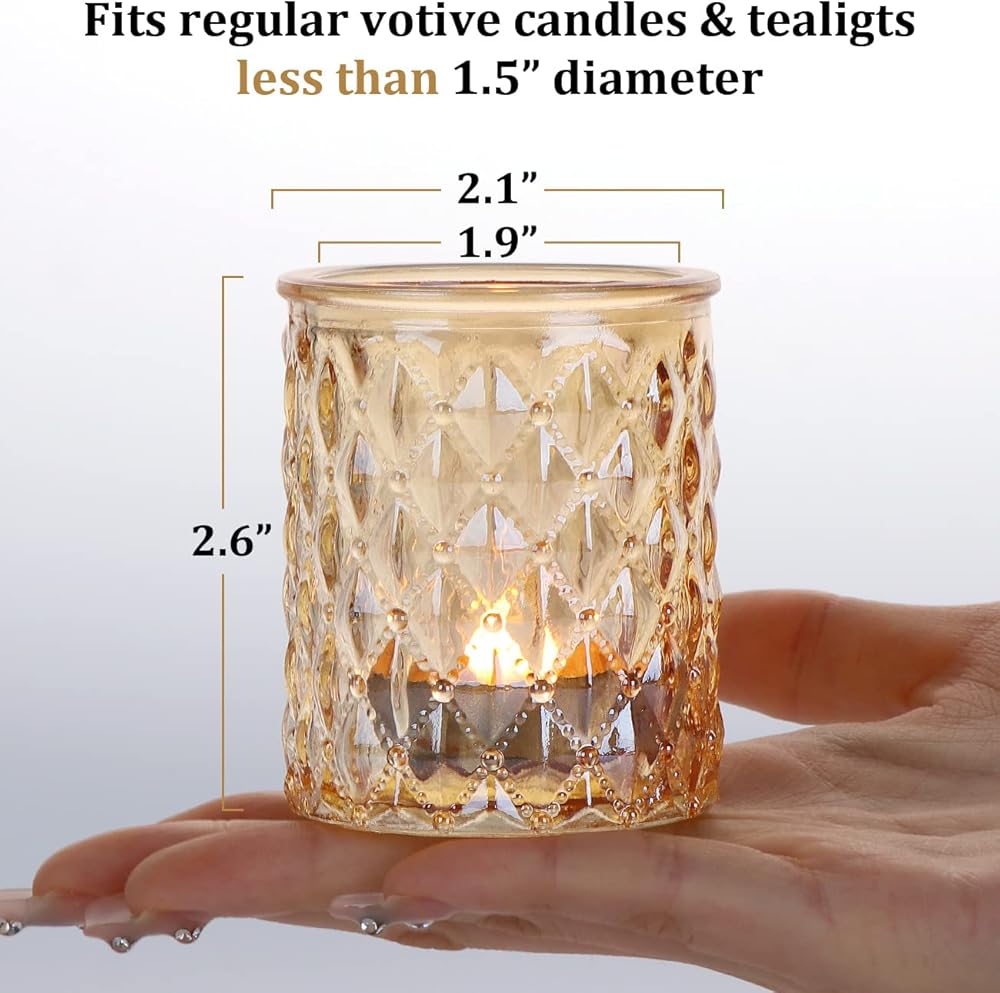 💎GLASS CANDLE HOLDER - DIY candles: Each glass candle holder is about 2.1"D * 2.6"H. The capacity of the candle holders is 3 oz, which works well for handmade candles. Matching regular votive candles, flameless LED light or tealight candles less than 1.8" in diameter are also good choices.