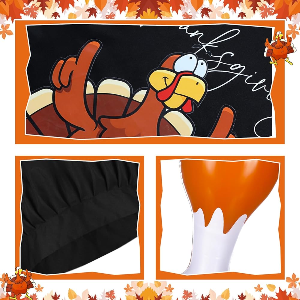 Geyoga 3 Pcs Thanksgiving 12 ft Skeleton Outfits Costume Accessories 24 Inch Inflatable Turkey Leg Cooking Hat Apron(Vibrant Patterns)