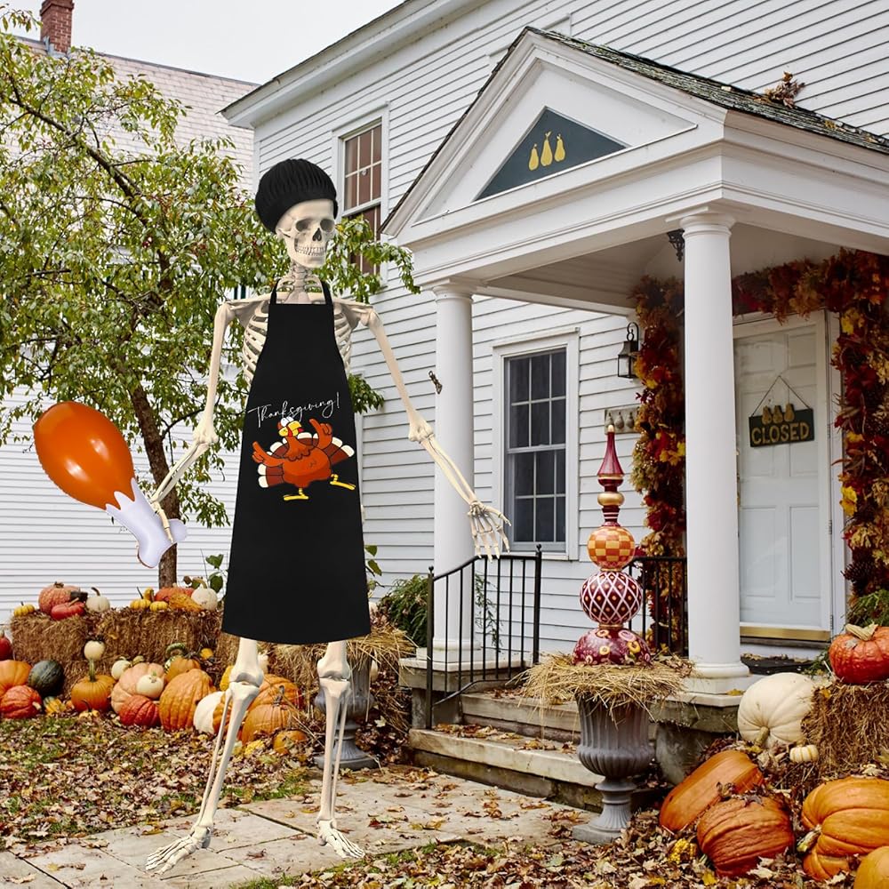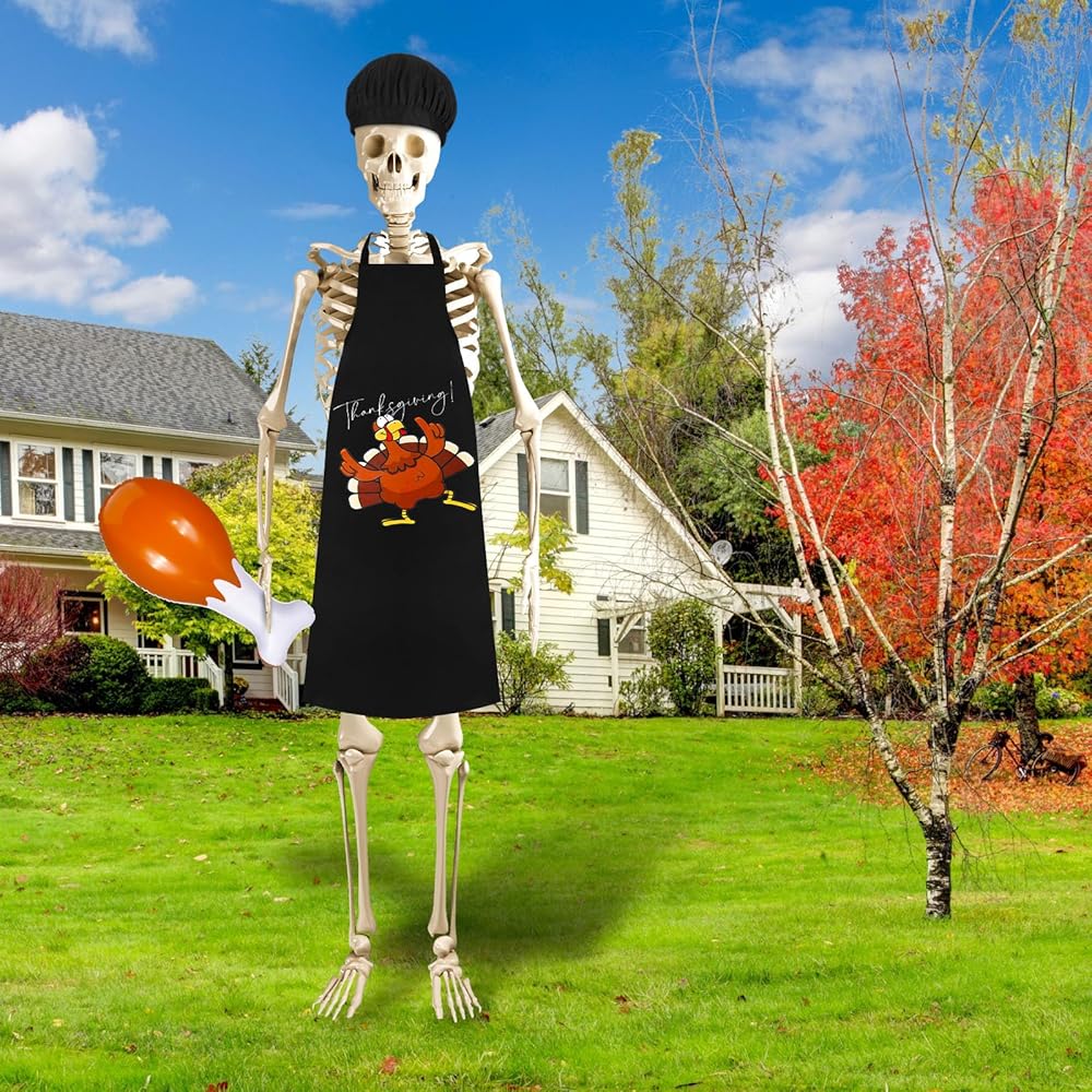• Thanksgiving Skeleton Accessories Set: the package includes 1 pcs turkey apron, 1 pcs inflatable turkey leg, 1 pcs chef hat; With these accessories, your 12 feet skeleton is sure to shine on Thanksgiving Day