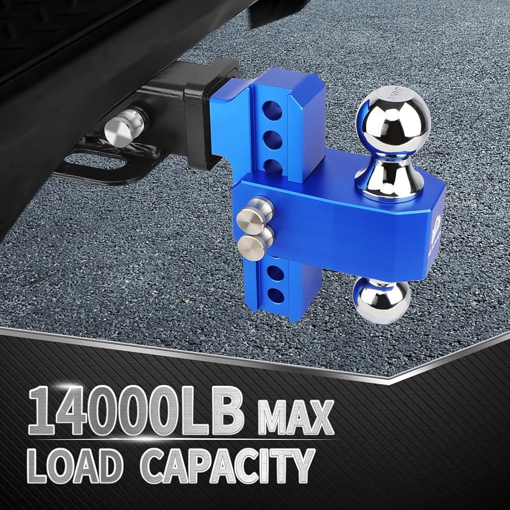 PREMIUM MATERIAL - The heavy duty drop hitch is made from premium Aluminum with advanced oxide technology applied on the finish, which makes the tow hitch anti-rust, water-resistant and corrosion resistant and durable in harsh environment. Also the tow hitch is with milled rounded corner for easy inserting.