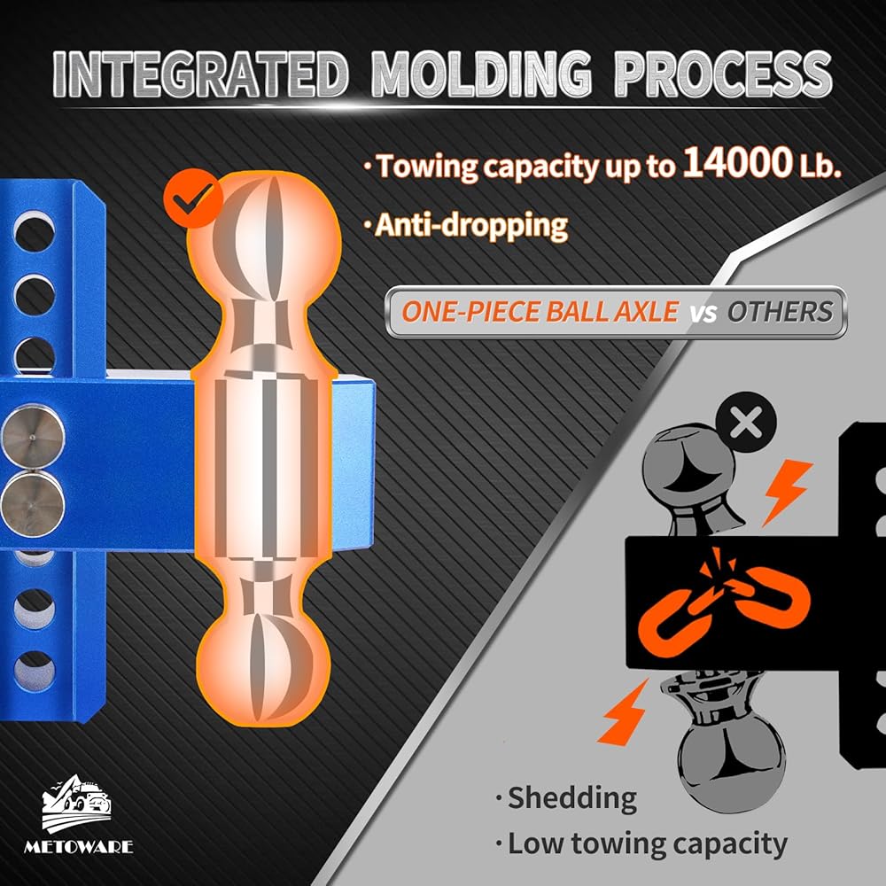 POWERFUL TOWING CAPACITY - Integrated hitch balls allow for supreme towing capacity on your trailer hitch. The 2" hitch ball has towing capacity of 8,000 lbs, while 2-5/16" hitch ball offers an industry-leading towing capacity of 12,500lbs, so you can tow heavier loads such as heavy duty trucks or RVs for everyday work.