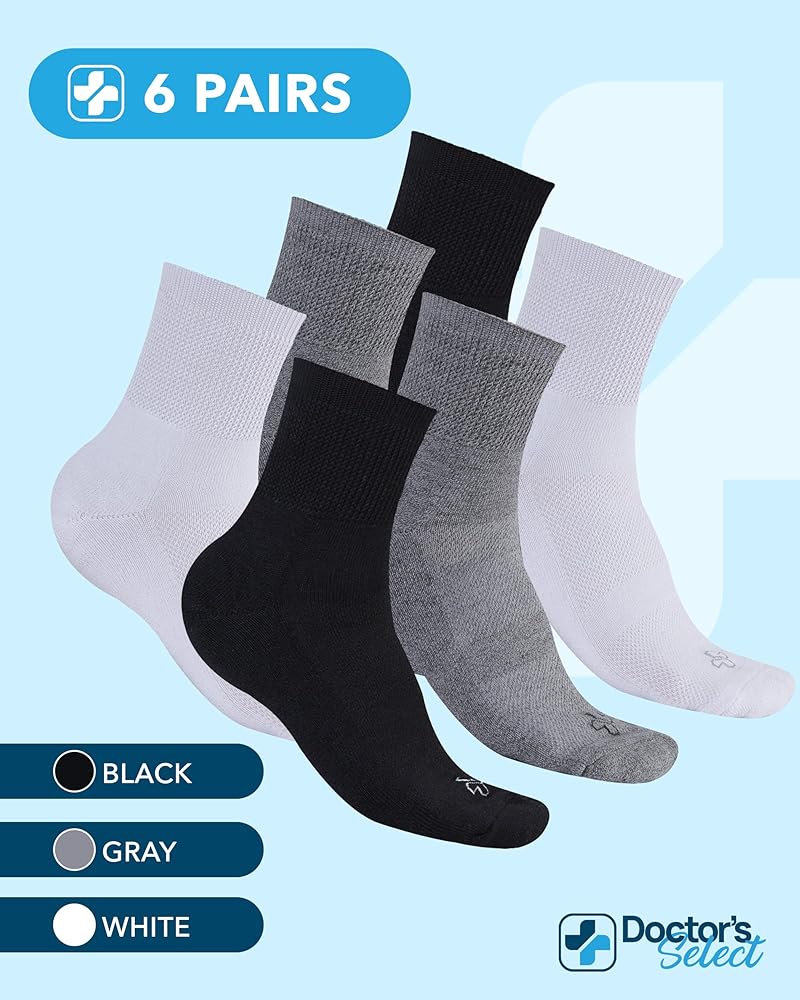 Doctor's Select Bamboo Viscose Diabetic Socks for Women & Men - 6 Pairs, Viscose Bamboo Socks Woman, Non Binding, Wide Top