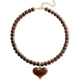 Eye - Catching Design:This necklace showcases a string of amber - hued /black acrylic beads, exuding a warm and rich glow. The heart - shaped pendant at the center, with its delicate details, adds a romantic and charming touch, making it a focal point of any outfit.